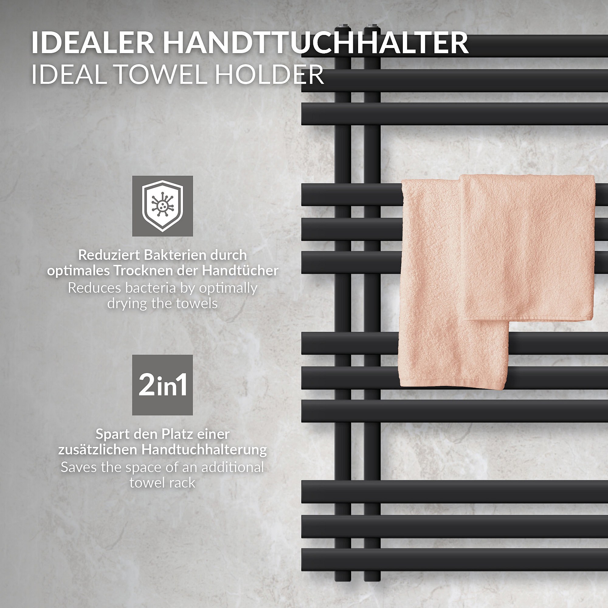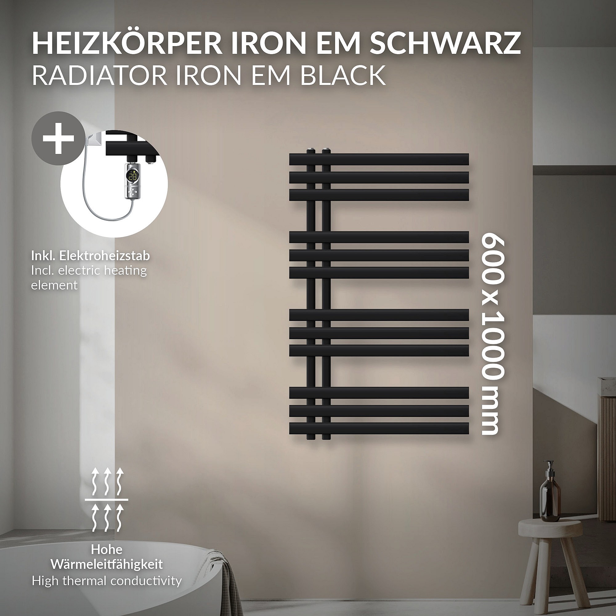 Radiatore Iron EM per asciugamani nero 500x1200 mm con elemento riscaldante 900W