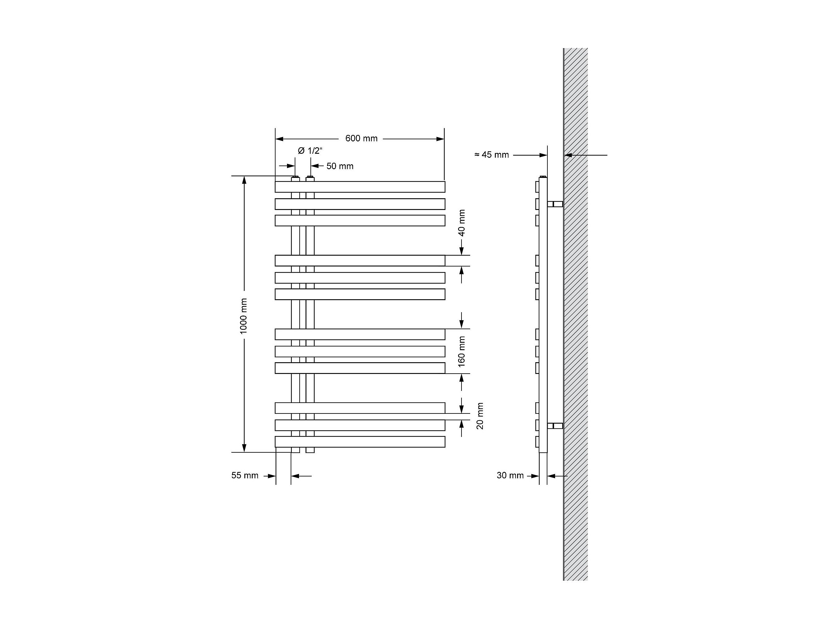 Radiatore elettrico bagno acciaio nero opaco 60x140cm elemento riscaldante 1200W