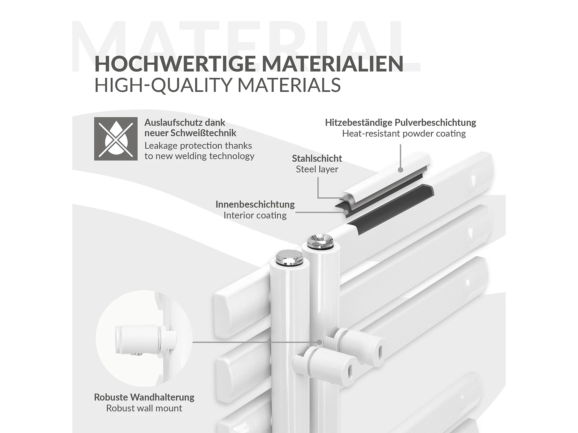 Radiatore di design Portasciugamani a parete Portasciugamani 500 x 1200 Bianco