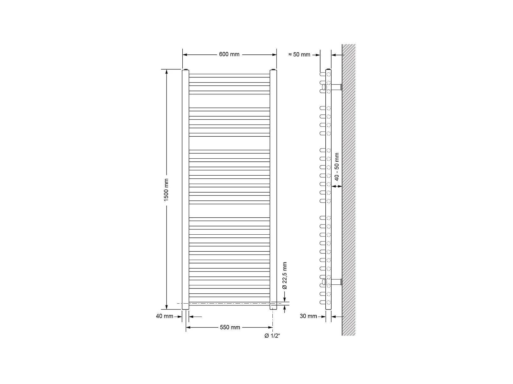 Radiatore da bagno Sahara dritto bianco attacco laterale calorifero 40x150 cm