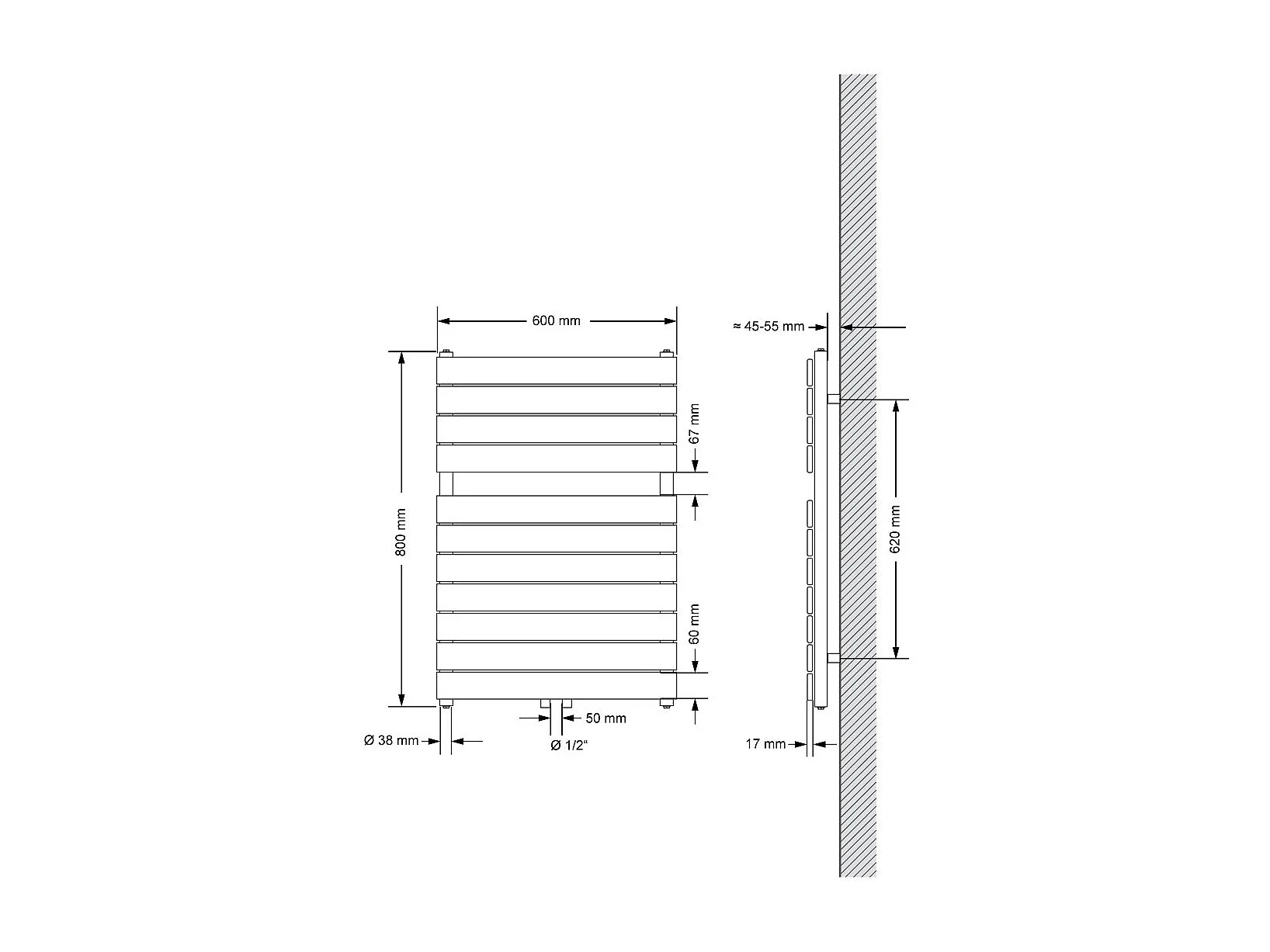 Radiatore scaldasalviette in acciaio antracite da bagno 500x800mm design moderno
