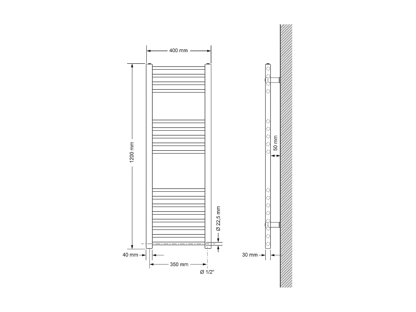 Radiatore da bagno Sahara bianco diritto attacco laterale calorifero 400x1200 mm