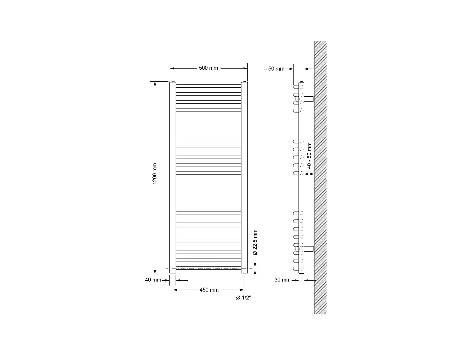 Ristrutturazione radiatore Sostituzione radiatore bagno Radiatore 500x1200 mm Bianco