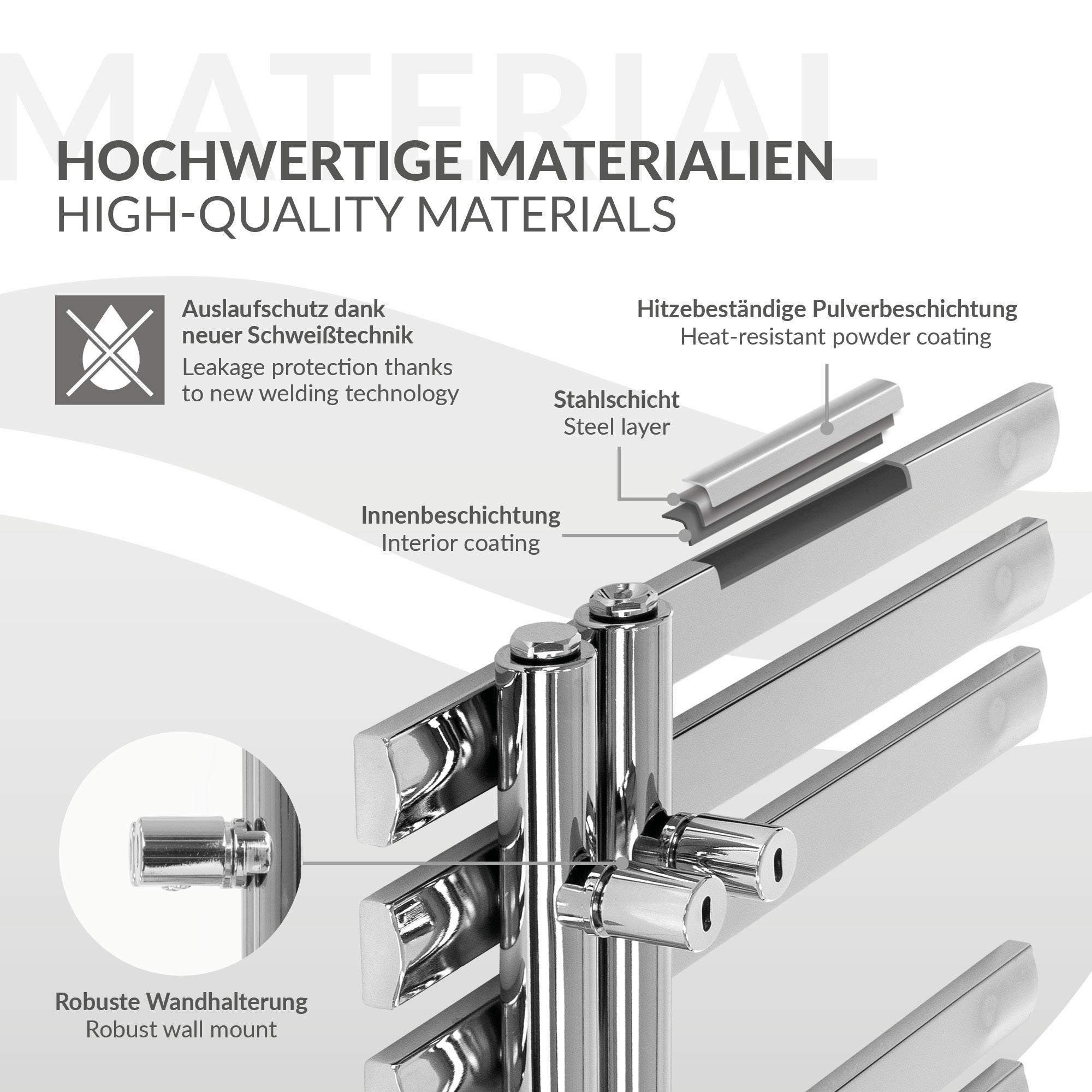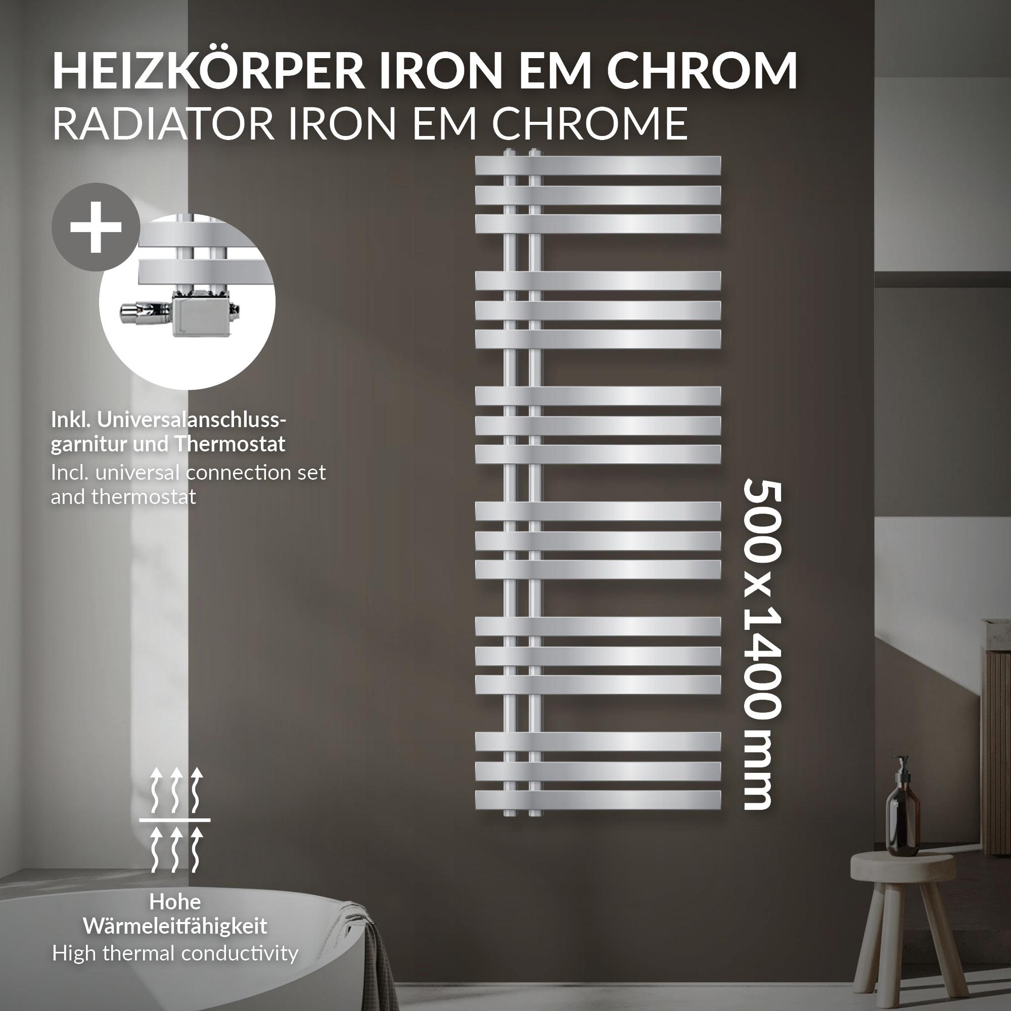 Radiatore di design Iron EM 500x1400 mm Cromato Attacco centrale in basso con profilo