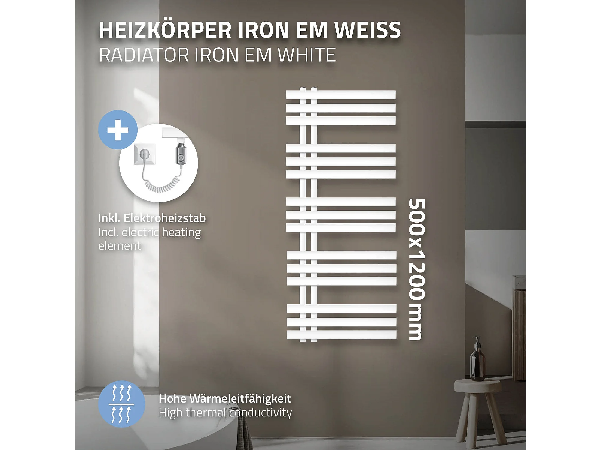 Radiatore da bagno Iron EM 500x1200 mm, bianco, termostato+finitura