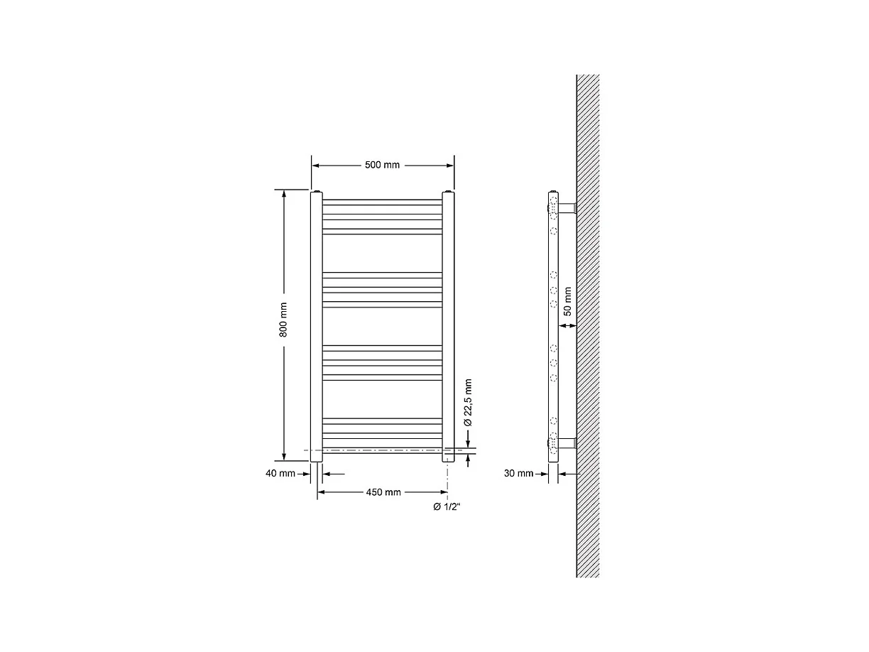 Radiatore elettrico da bagno 300W, 500 x 800 mm, bianco, dritto con collegamento