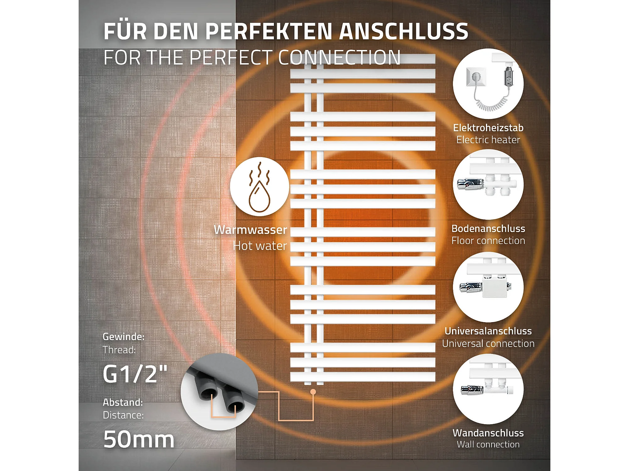 Radiatore di design Sahara non elettrico, 600 x 1200 mm, bianco, attacco centrale, con kit