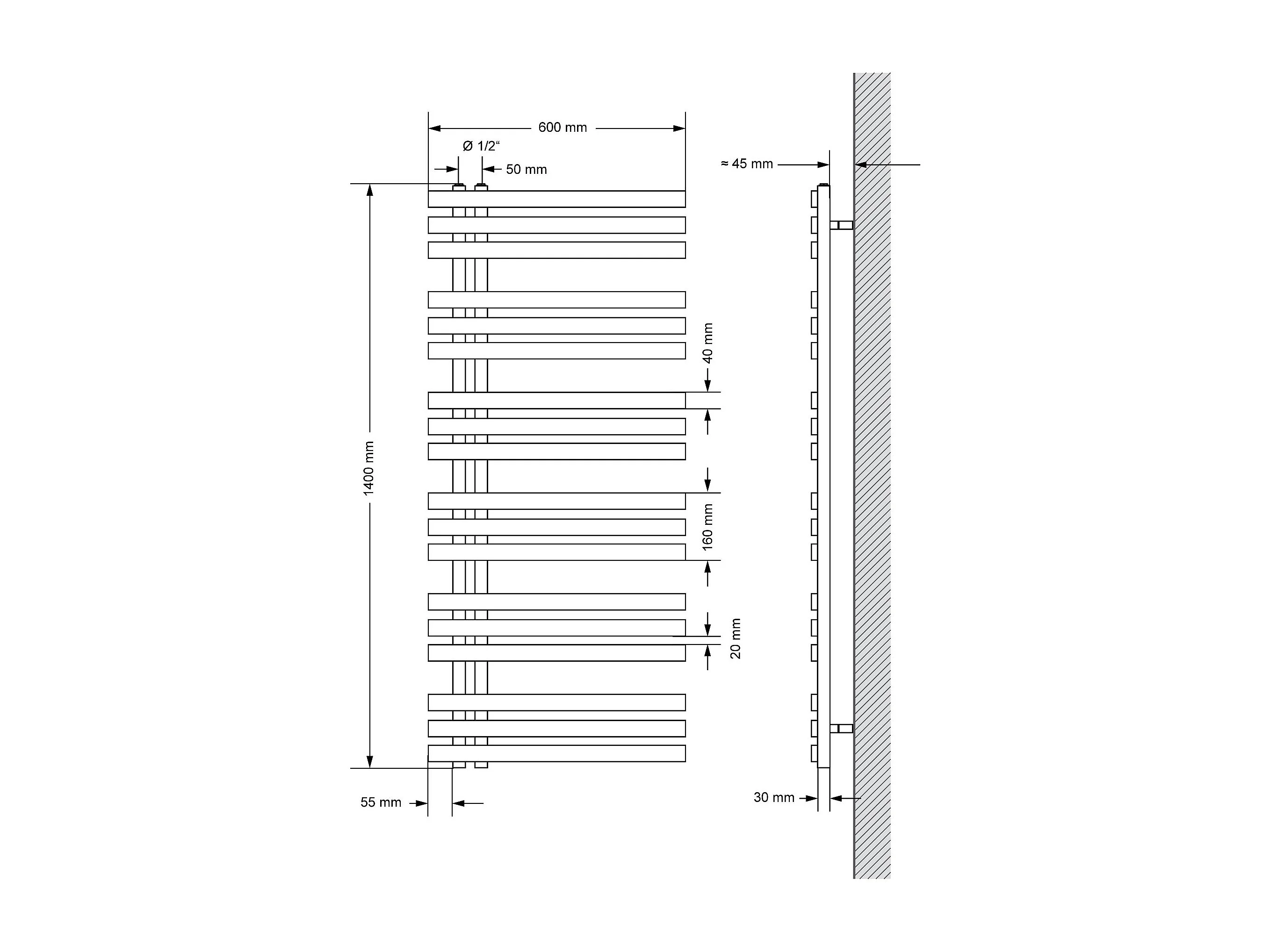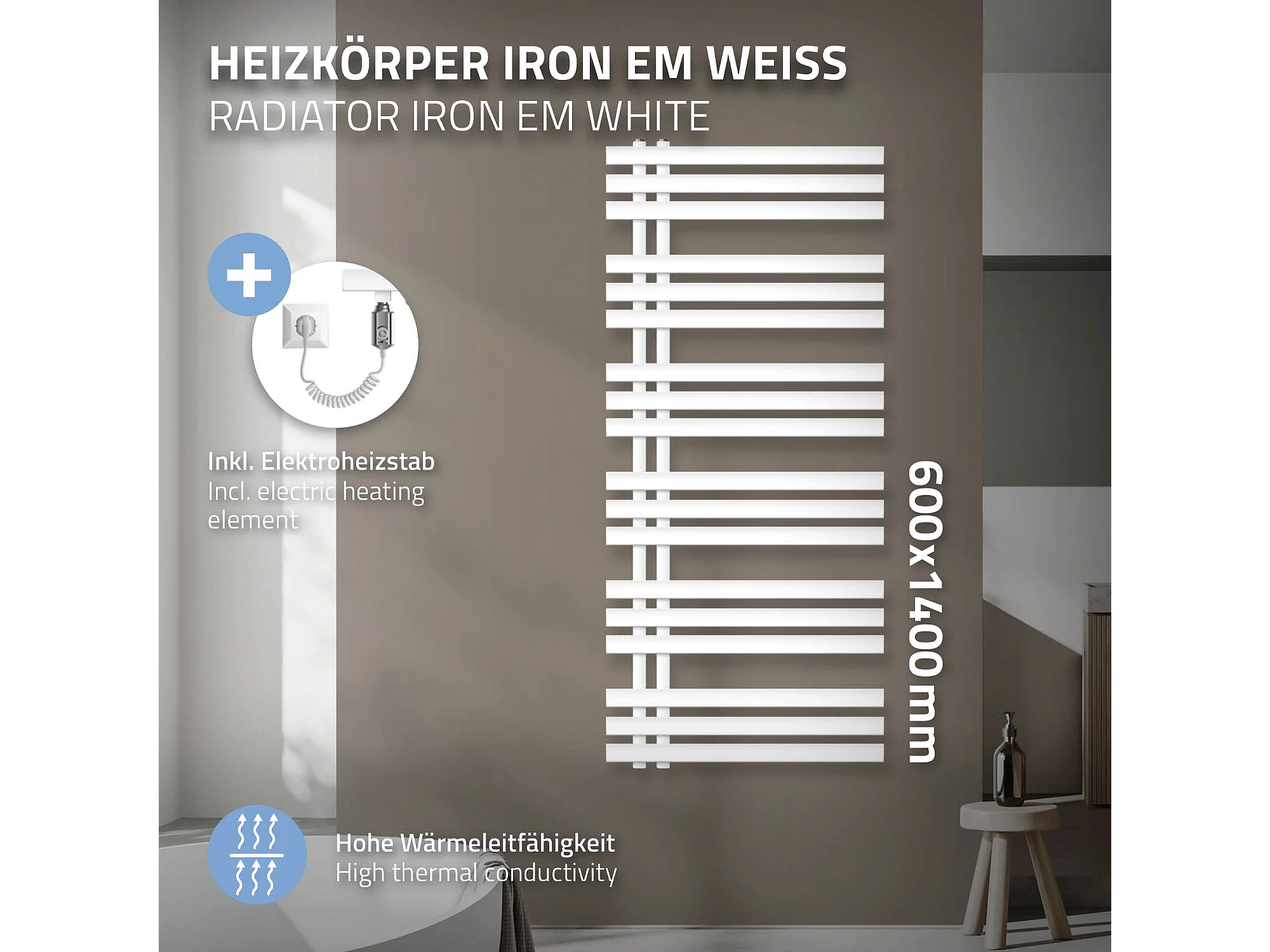 Radiatore elettrico Iron EM Design con resistenza 1200 W, 500 x 1400 mm, bianco