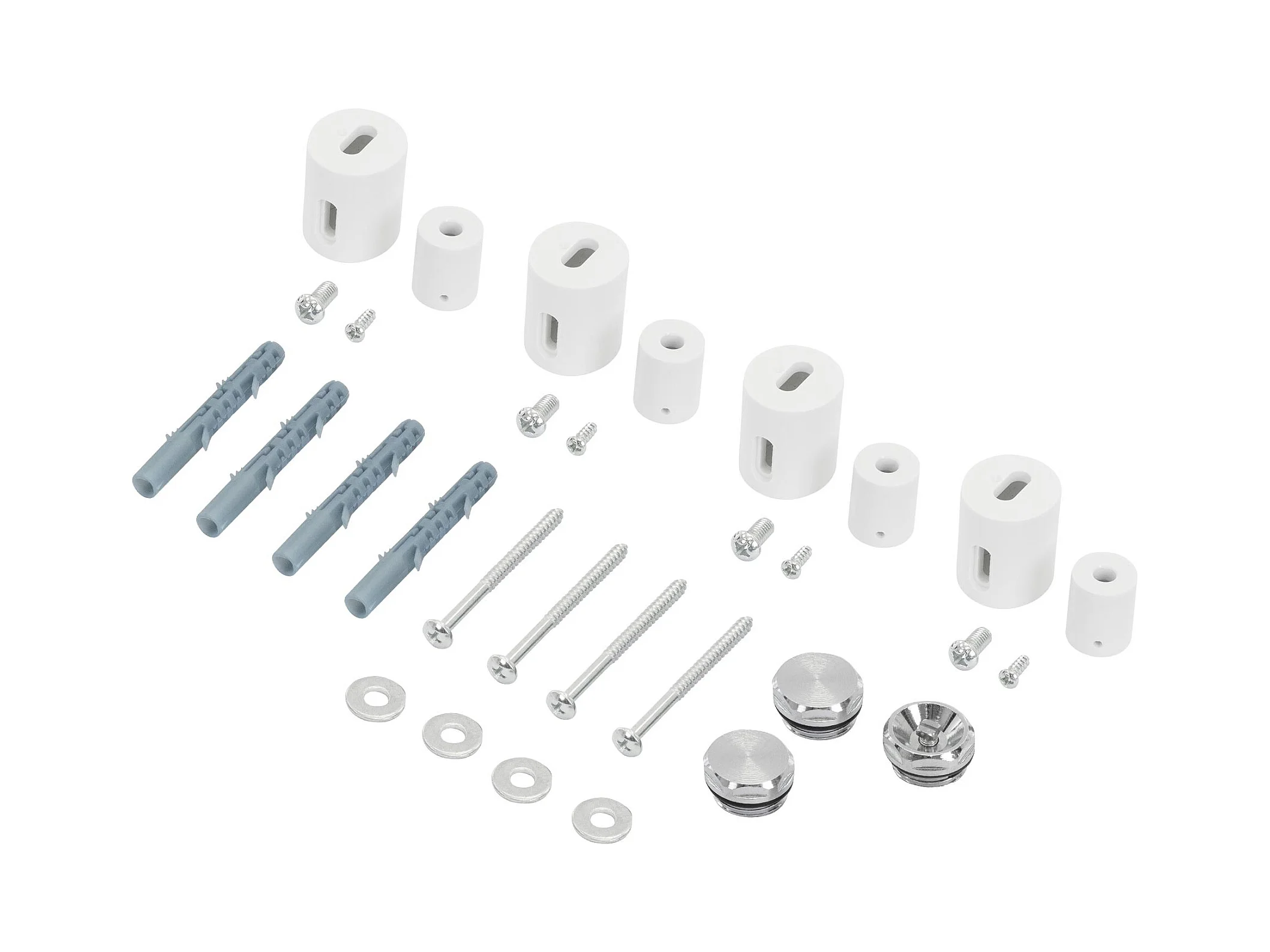 Set da bagno 7 pezzi: 1 portasciugamani + 1 portasciugamani laterale + 1 portarotolo + 4 ganci (spazzolato)