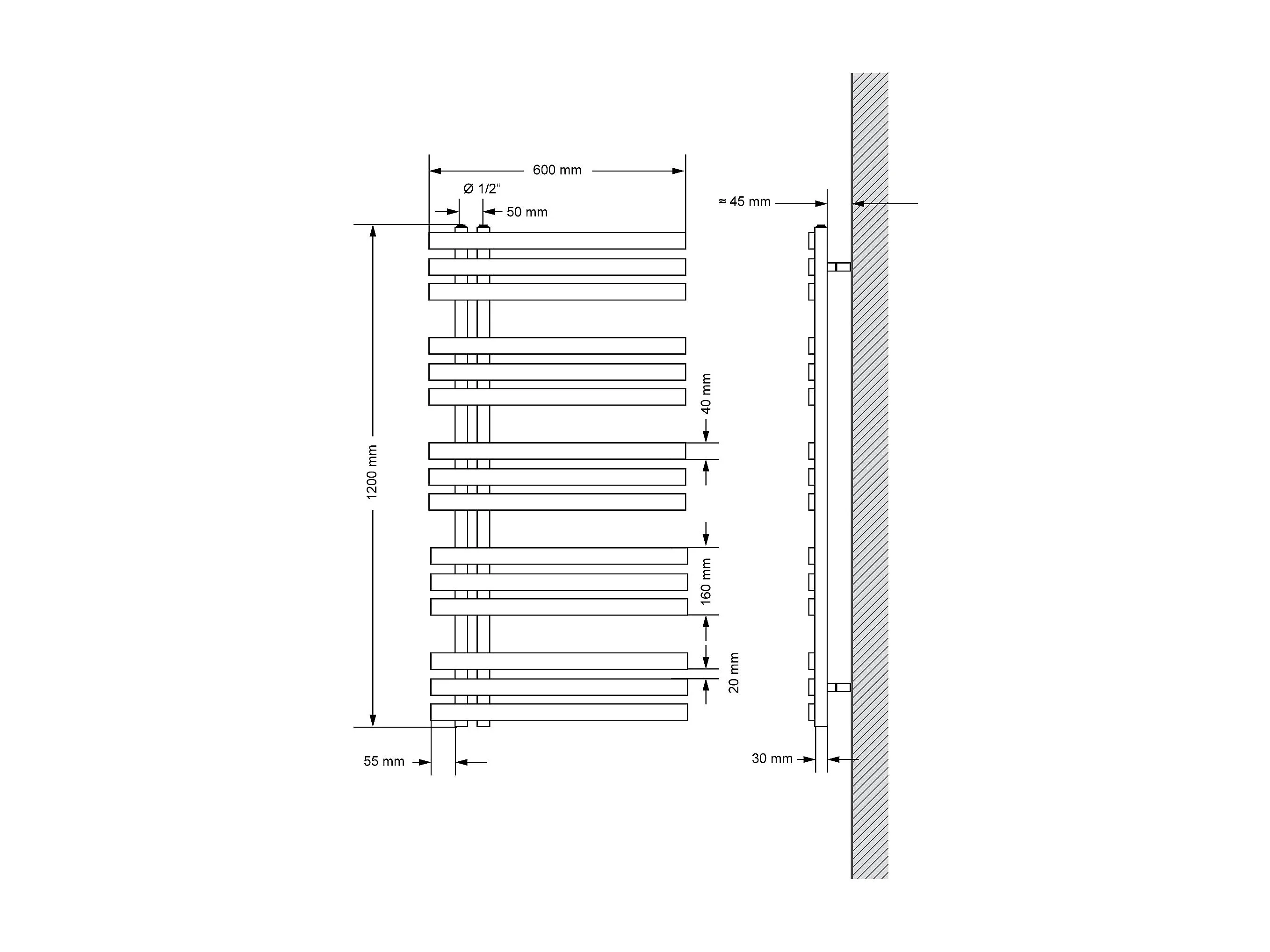 Radiatore Iron EM per asciugamani antracite 50x140 cm elemento riscaldante 1200W
