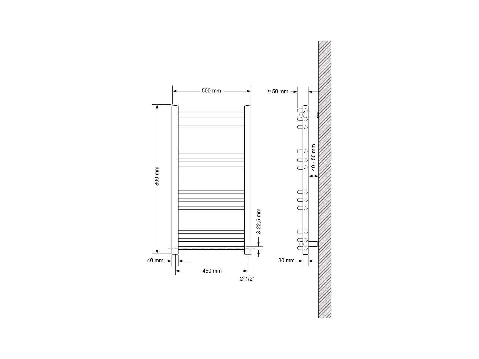 Radiatore elettrico da bagno 300W, 500 x 800 mm, bianco, dritto con collegamento