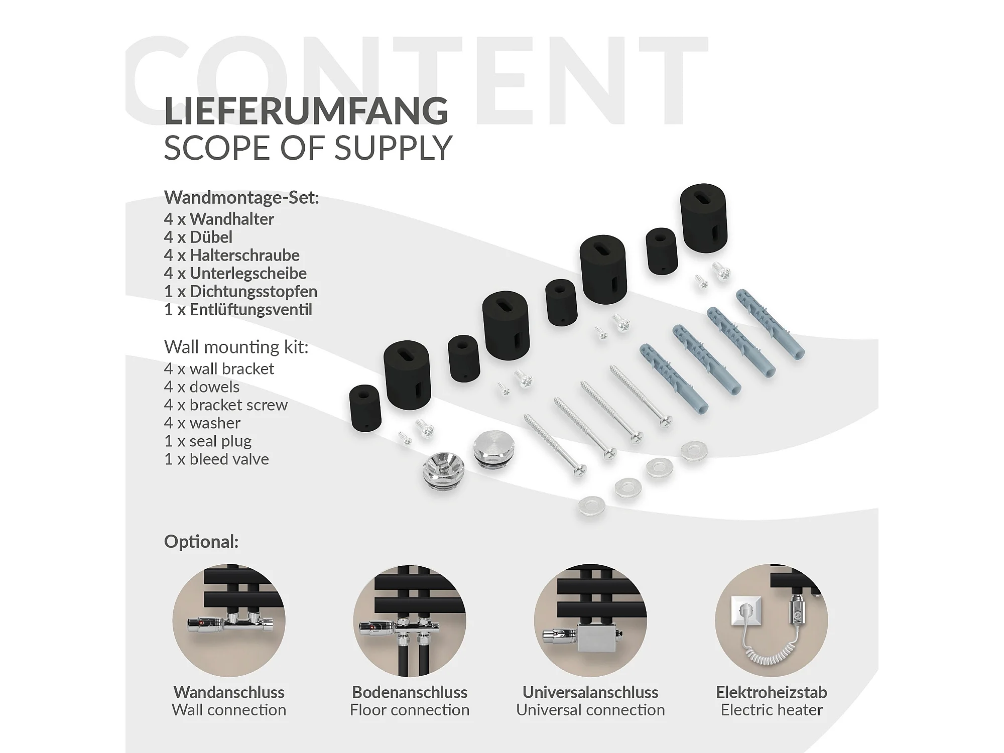 Radiatore da bagno Radiatore Sahara connessione centrale Scaldasalviette Nero 50x180cm