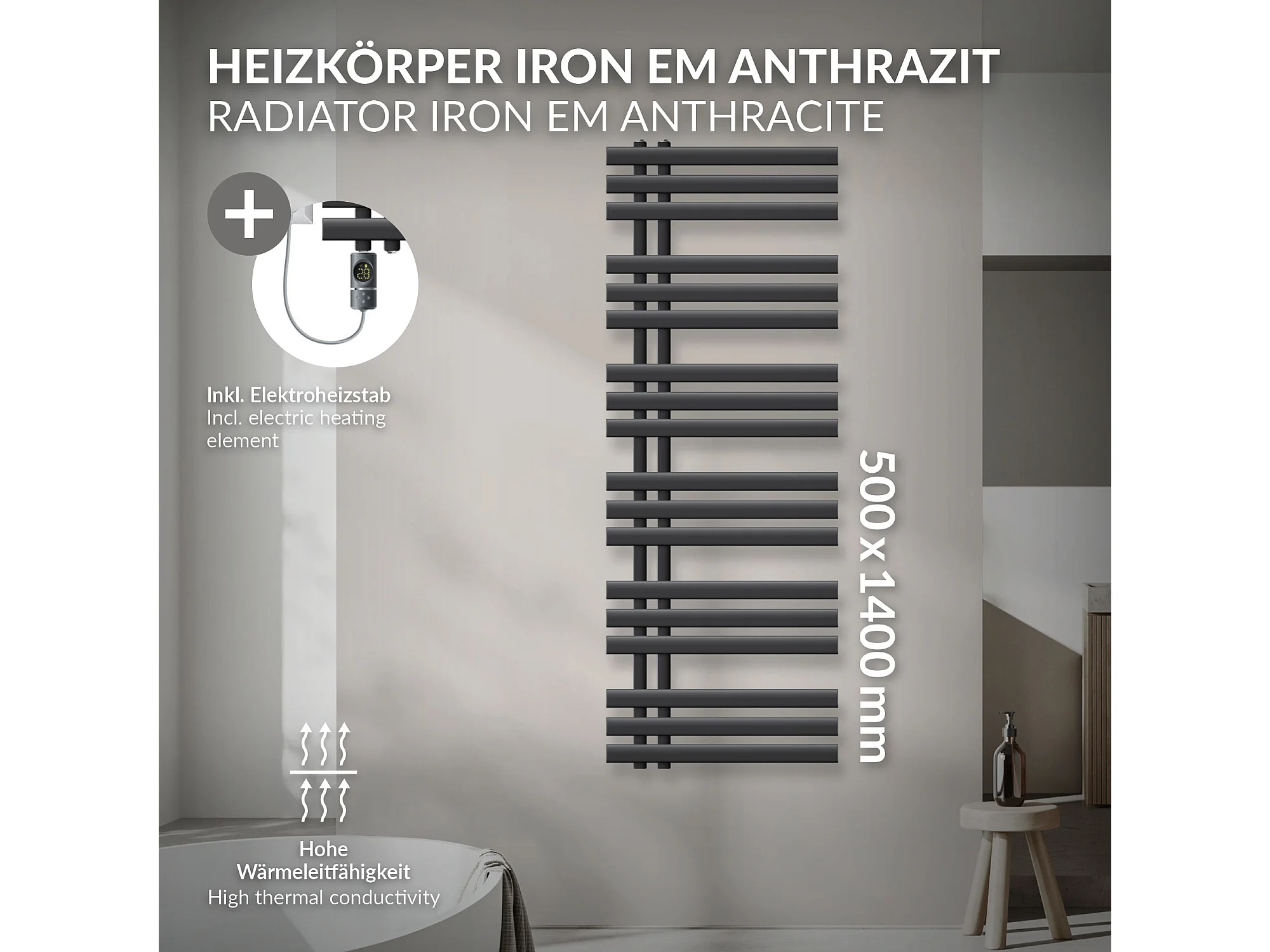Radiatore Iron EM per asciugamani antracite 50x140 cm elemento riscaldante 900W