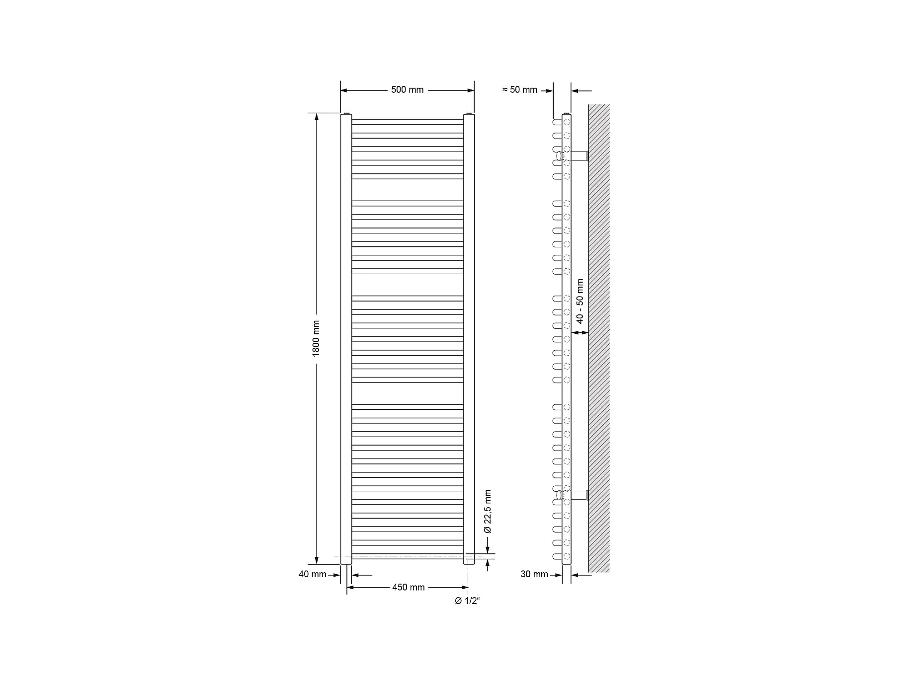 Radiatore da bagno termosifone scaldasalviette attacco laterale bianco 50x180 cm