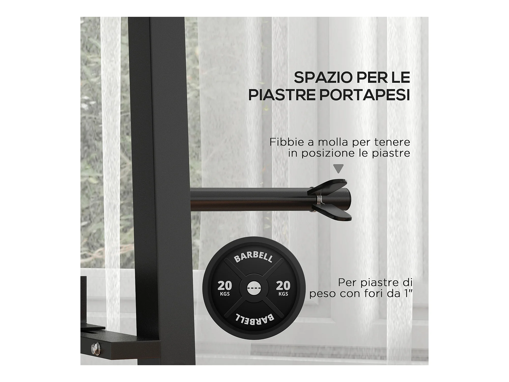 Rastrelliera per manubri in acciaio con 4 aste a distanza regolabile
