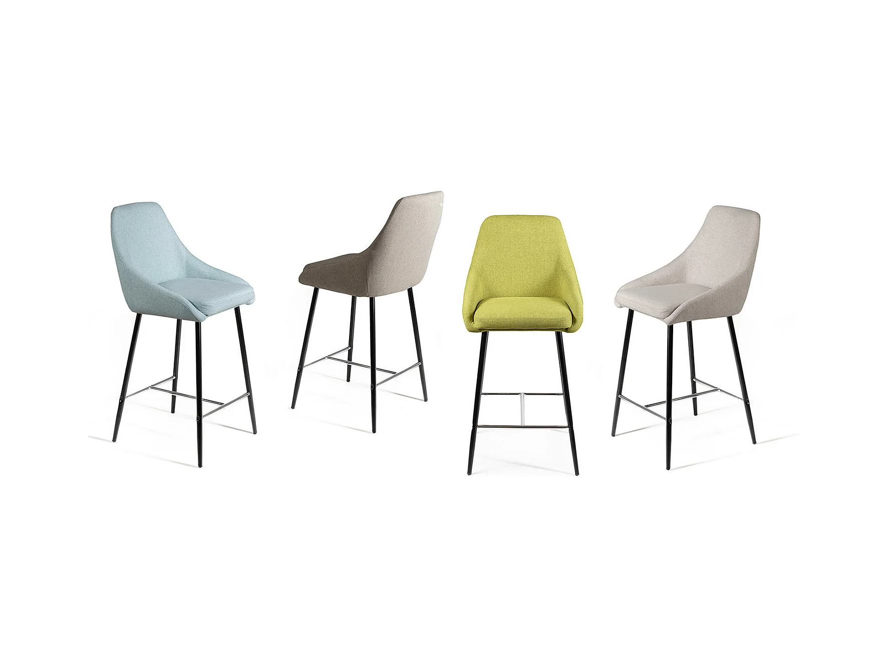 GRANT-Sedia da bar in tessuto verde e metallo nero (x4)