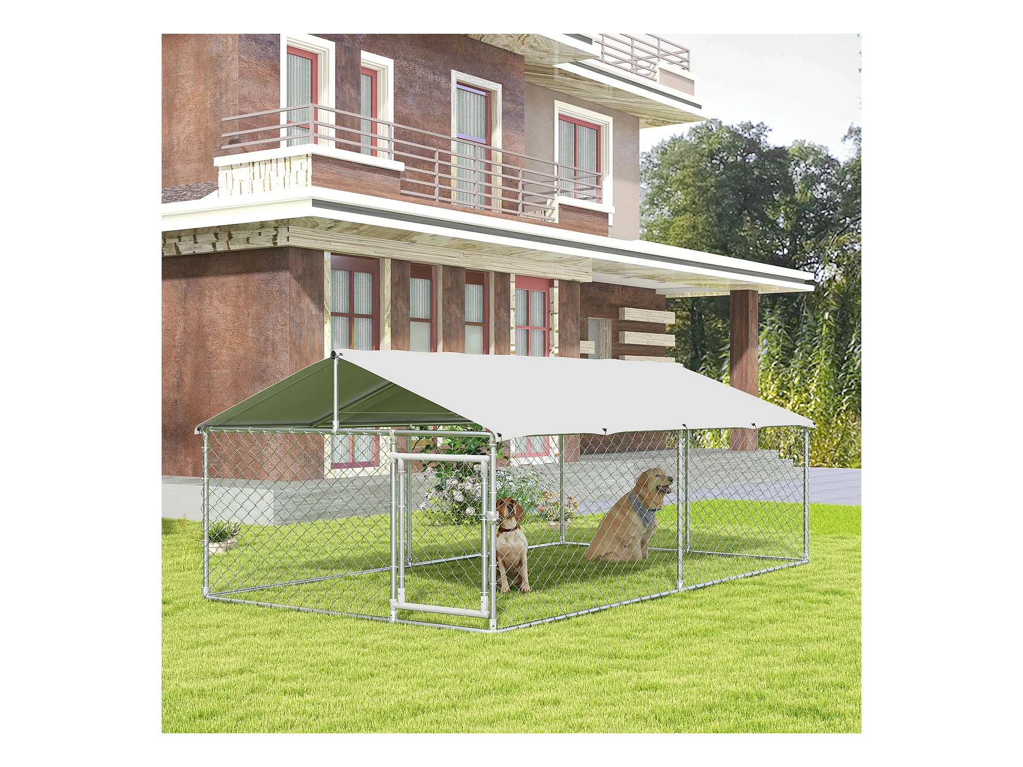 Recinto per cani da esterno in metallo con copertura impermeabile