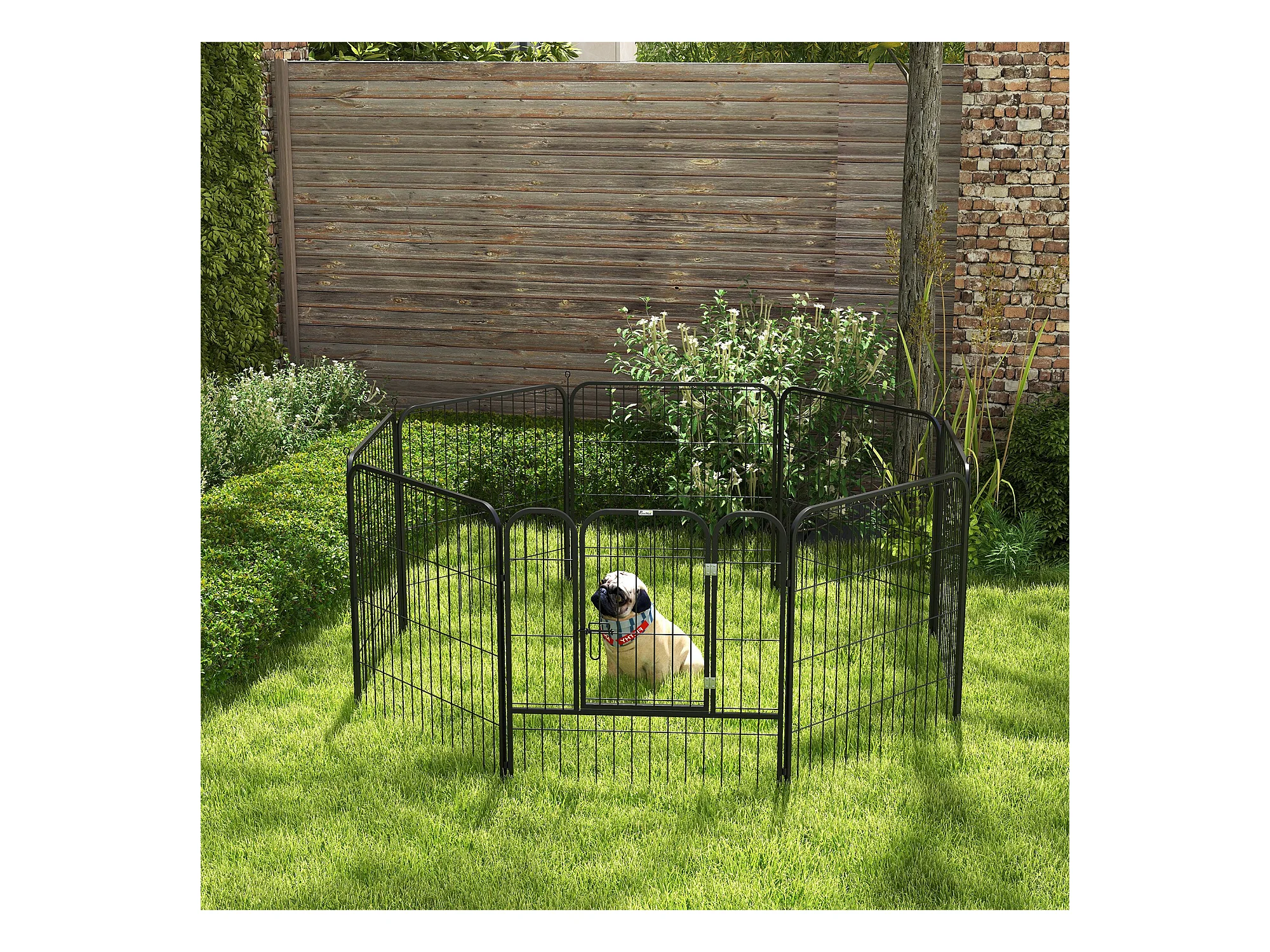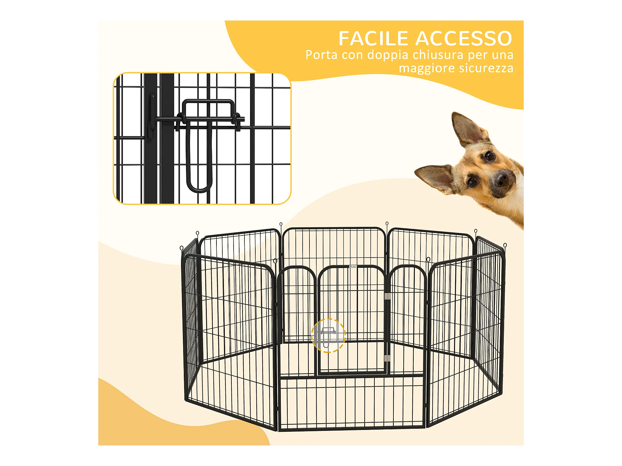 Recinto per cani da esterno e interno con 8 pannelli a rete e porta nero