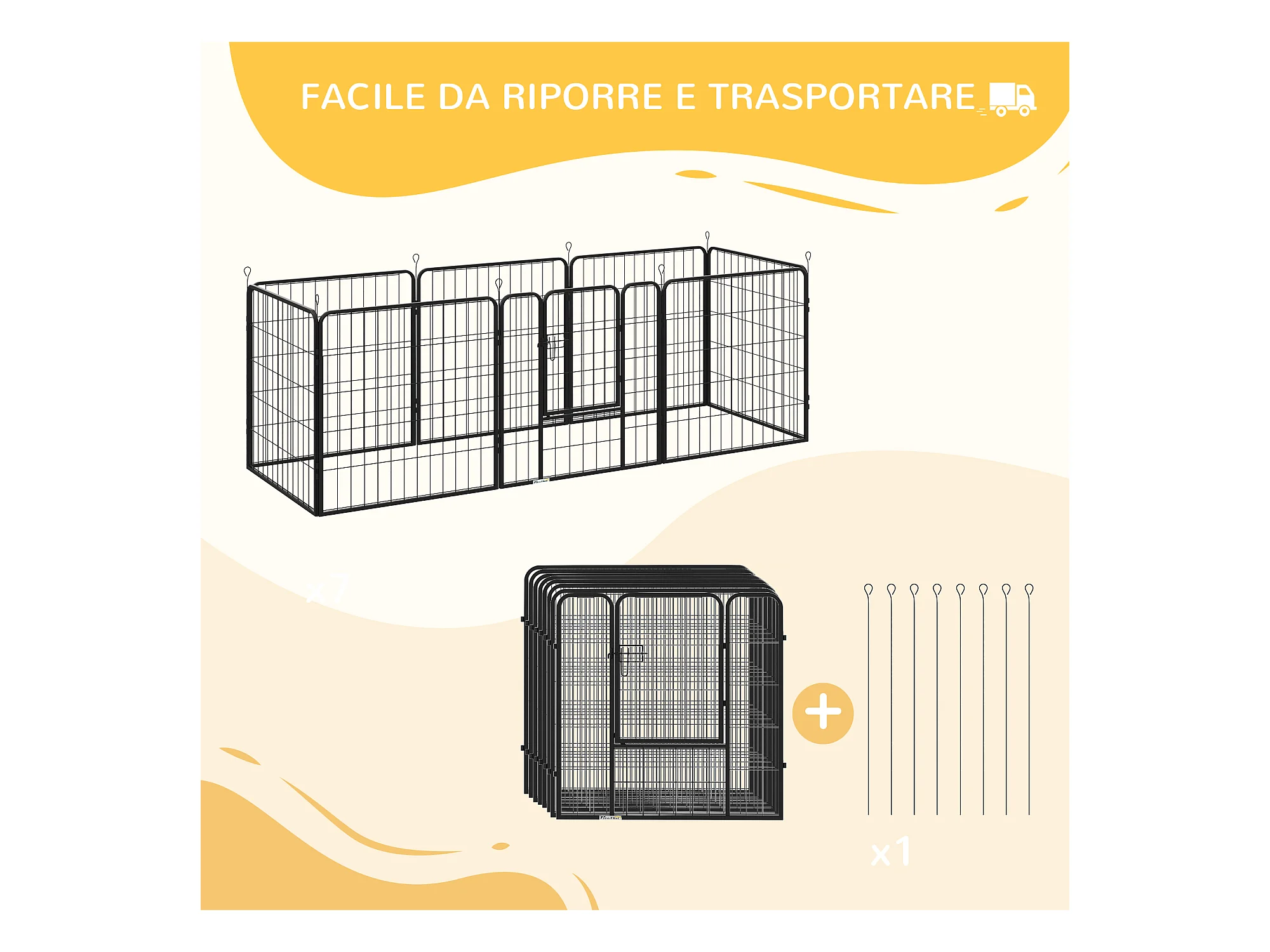 Recinto per cani e gatti kennel in metallo pieghevole con porta 8 pezzi