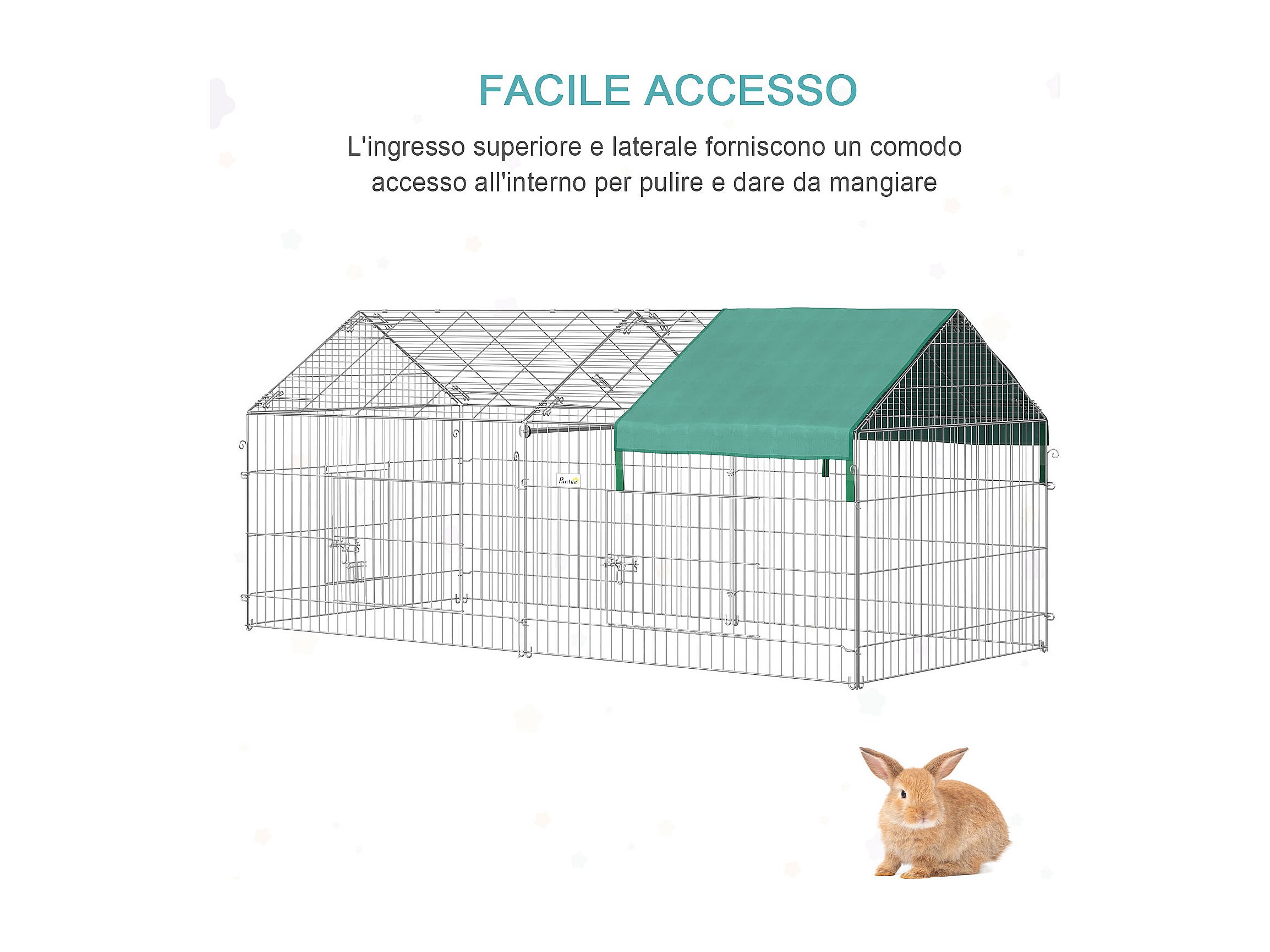 Recinto per animali con telo di copertura porte in acciaio 220x103x103cm
