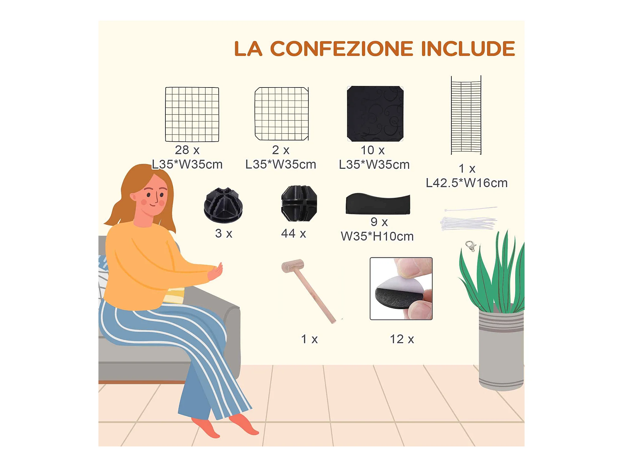 Recinto per animali modulabile con 12 pannelli 35x35 cm in metallo nero