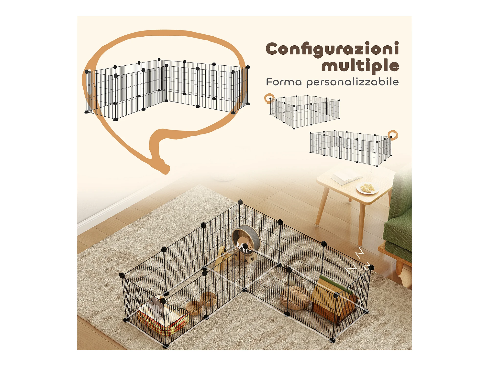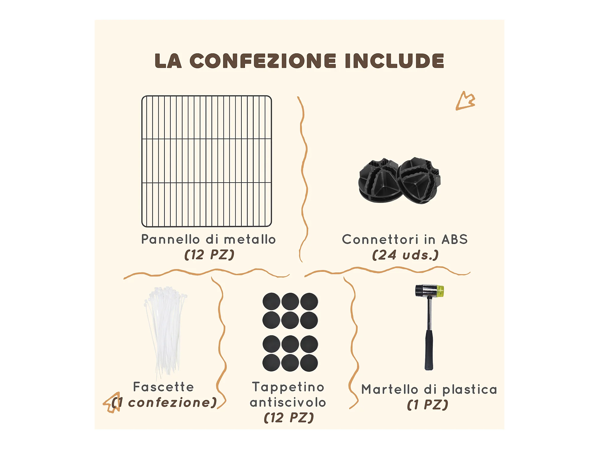 Recinto per animali modulabile con 12 pannelli 35x35 cm in metallo nero