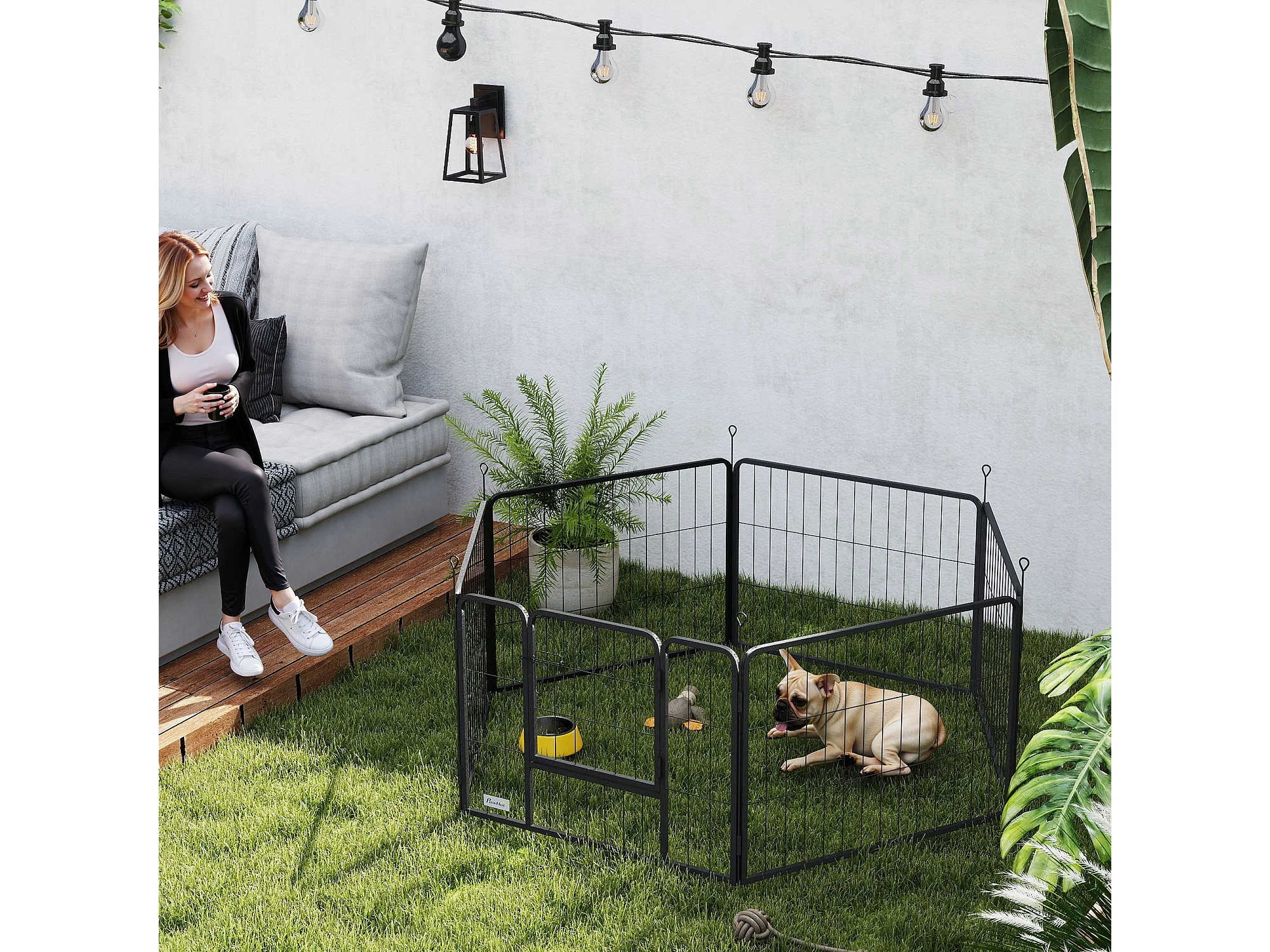 Recinto per cani a 6 pannelli da 80x1.5x60 cm in acciaio grigio scuro