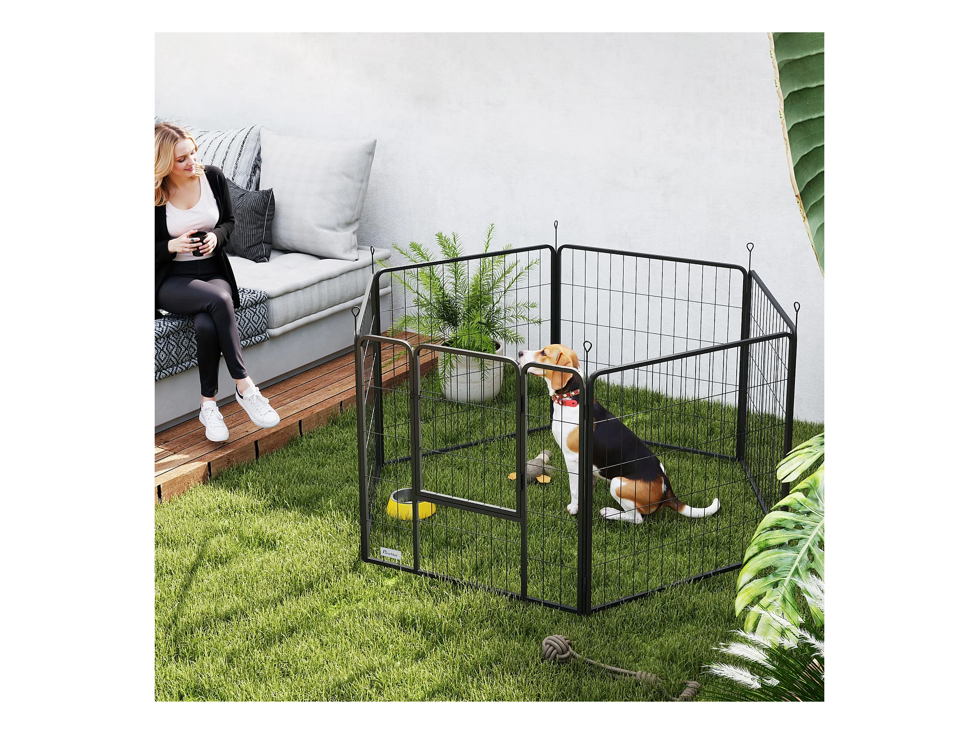 Recinto per cani a 6 pannelli modulabili in acciaio nero