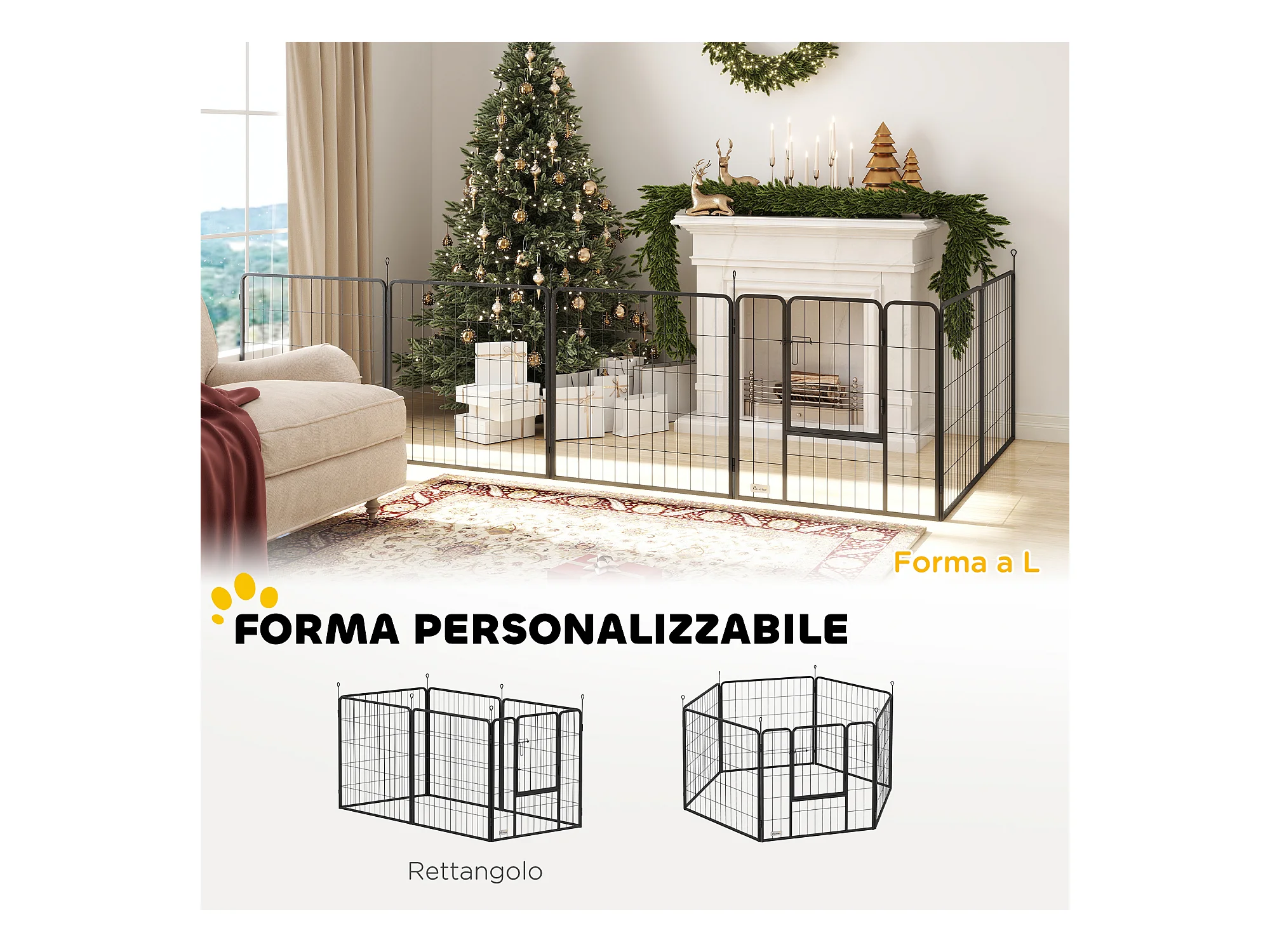 Cancellino per cani grandi a 6 pannelli modulabili 164x83x100cm nero