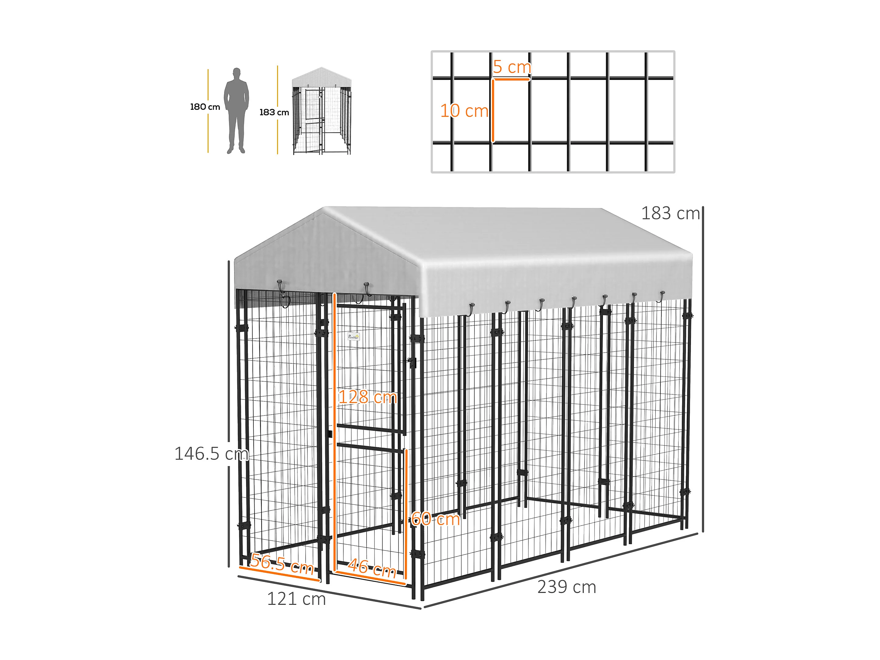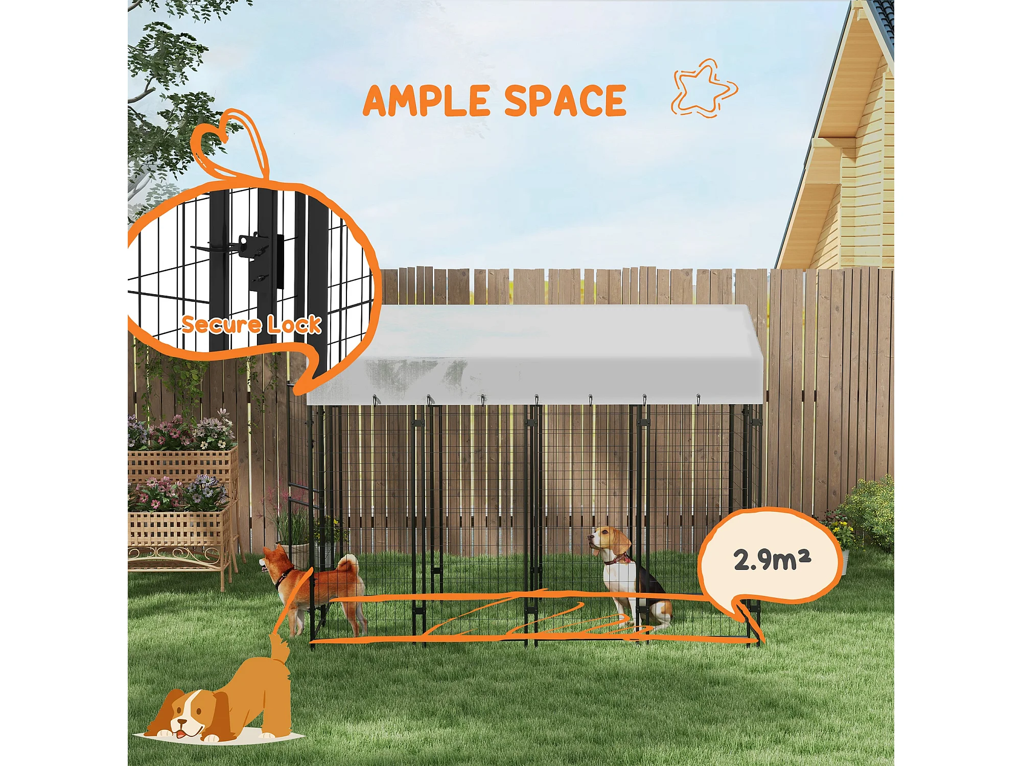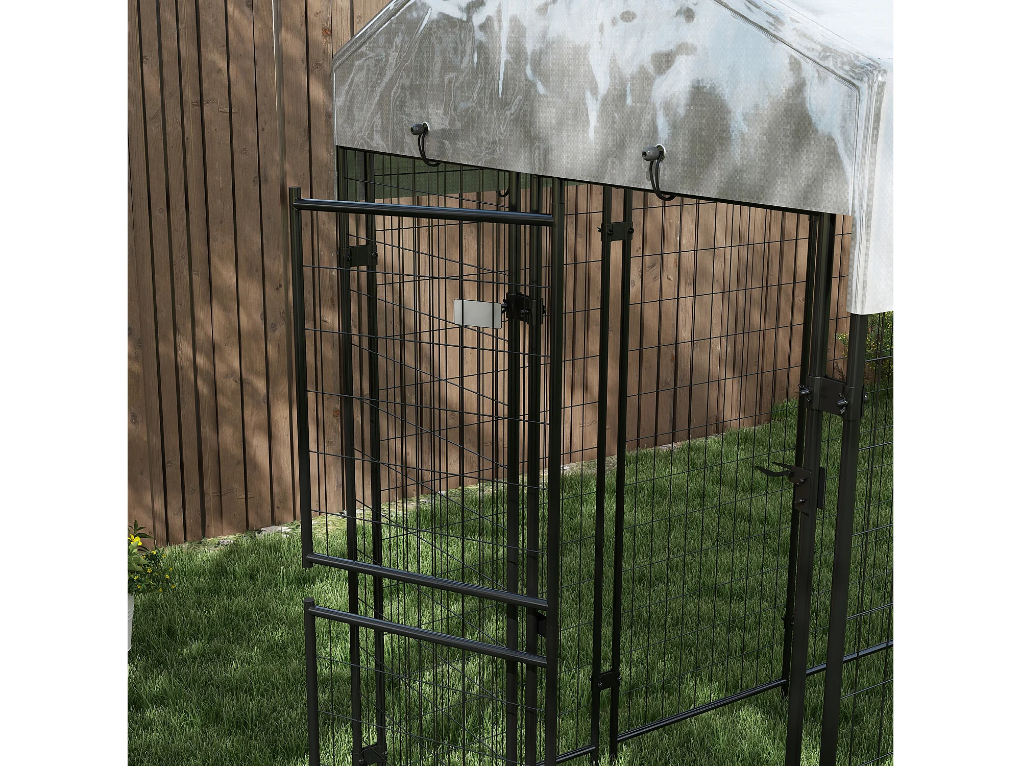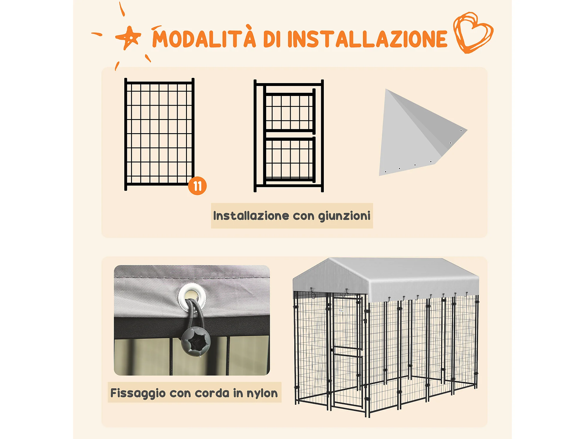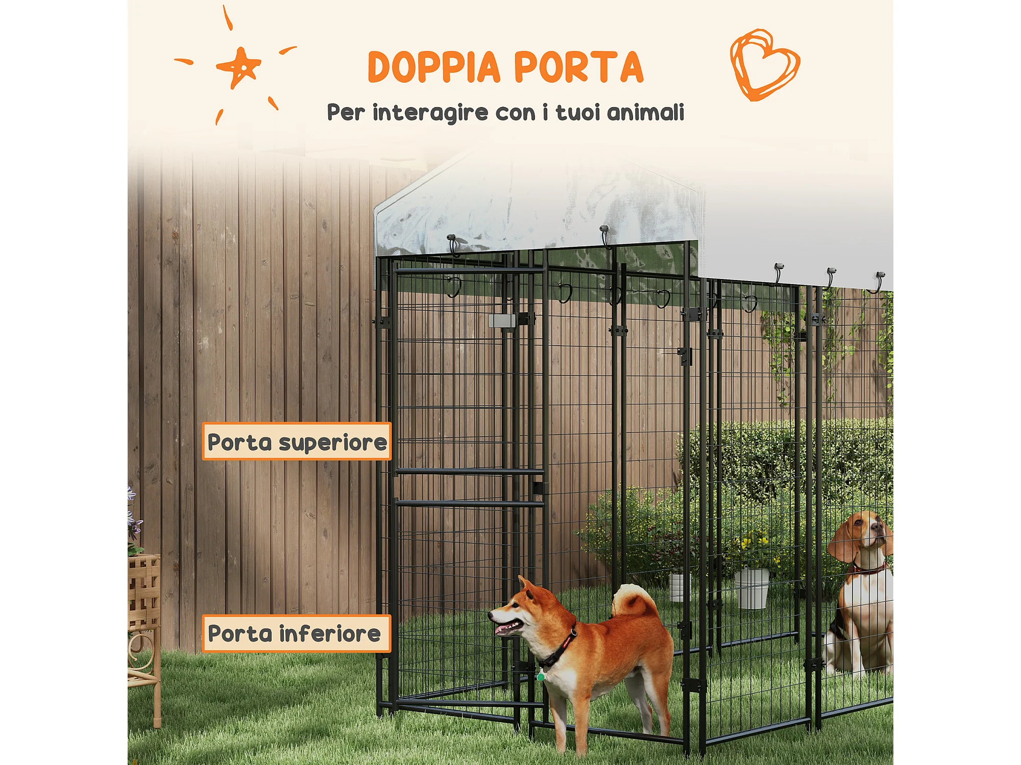 Recinto per cani da esterno in acciaio con copertura in tessuto