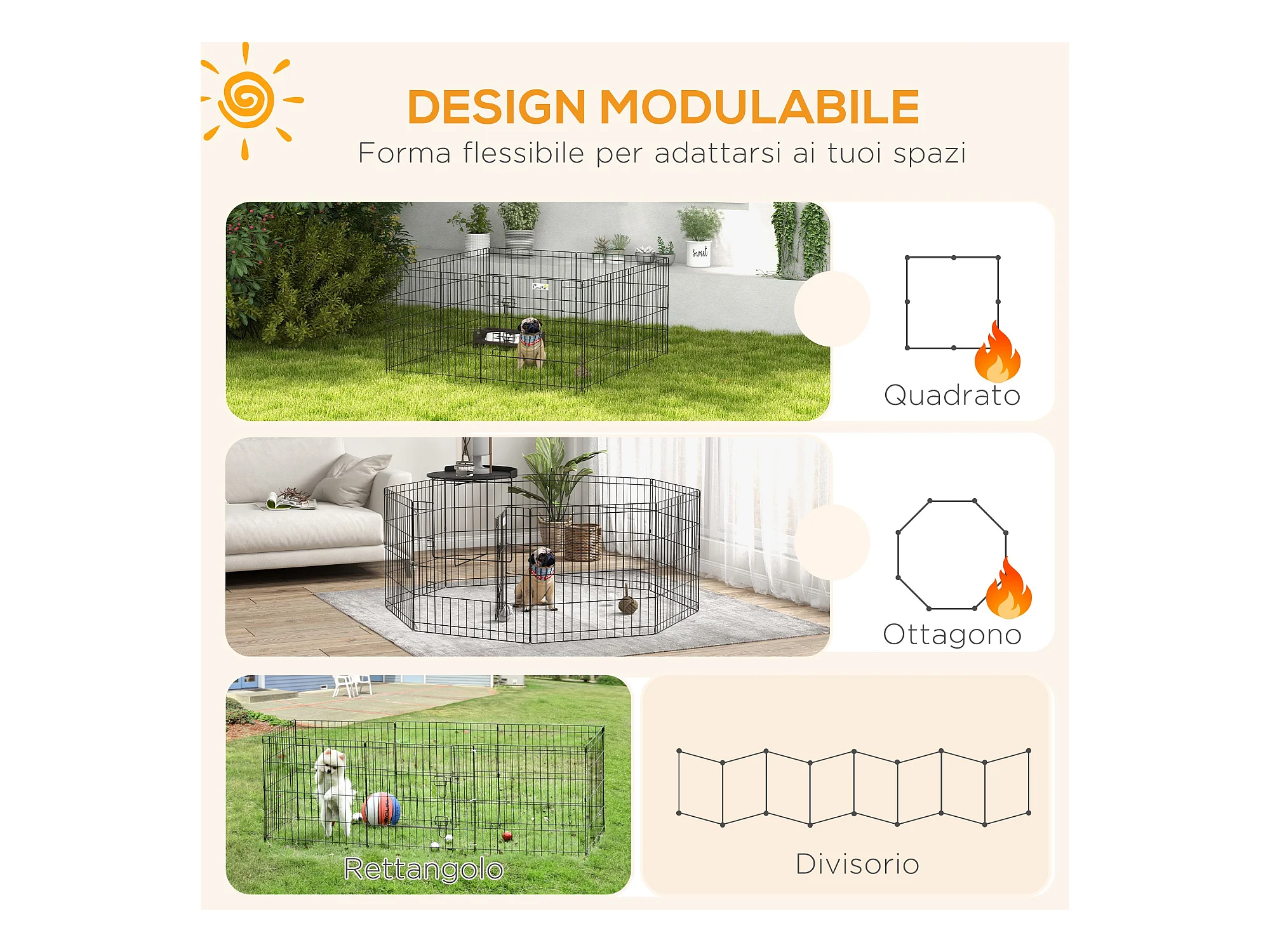 Recinto per cani da esterno e interno con 8 pannelli a rete e porta nero