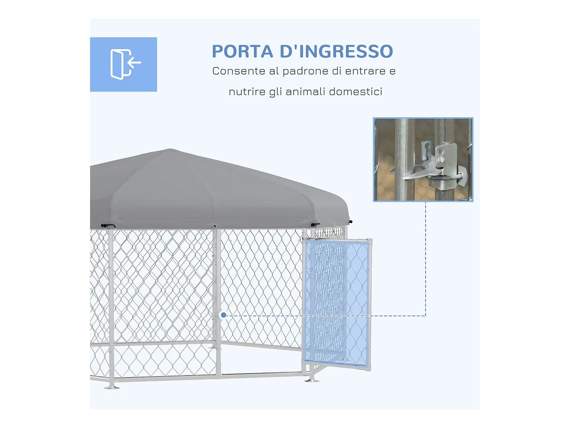 Recinto cani grandi fino 30kg per esterno con tetto anti-uv 4x2.3x1.5m