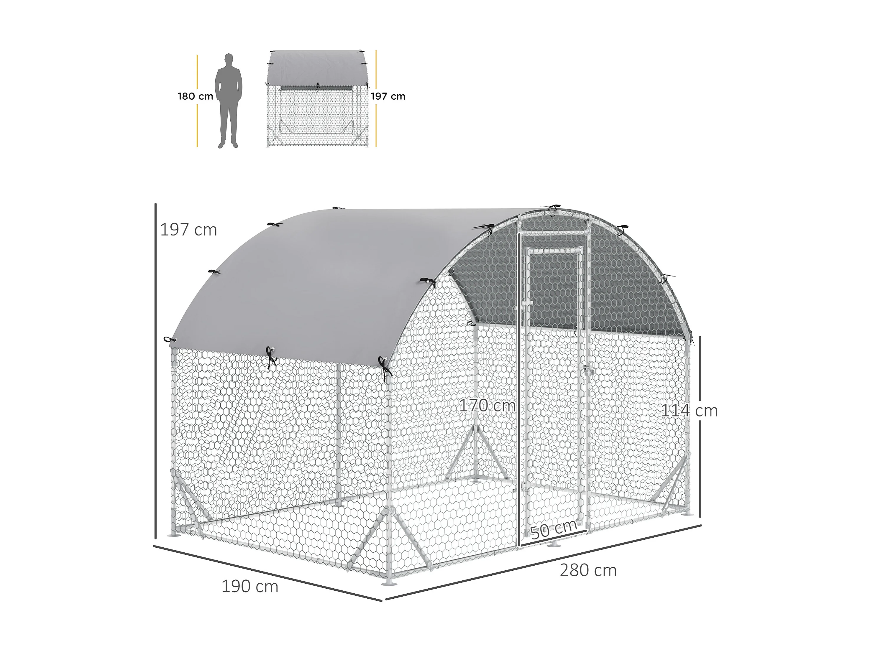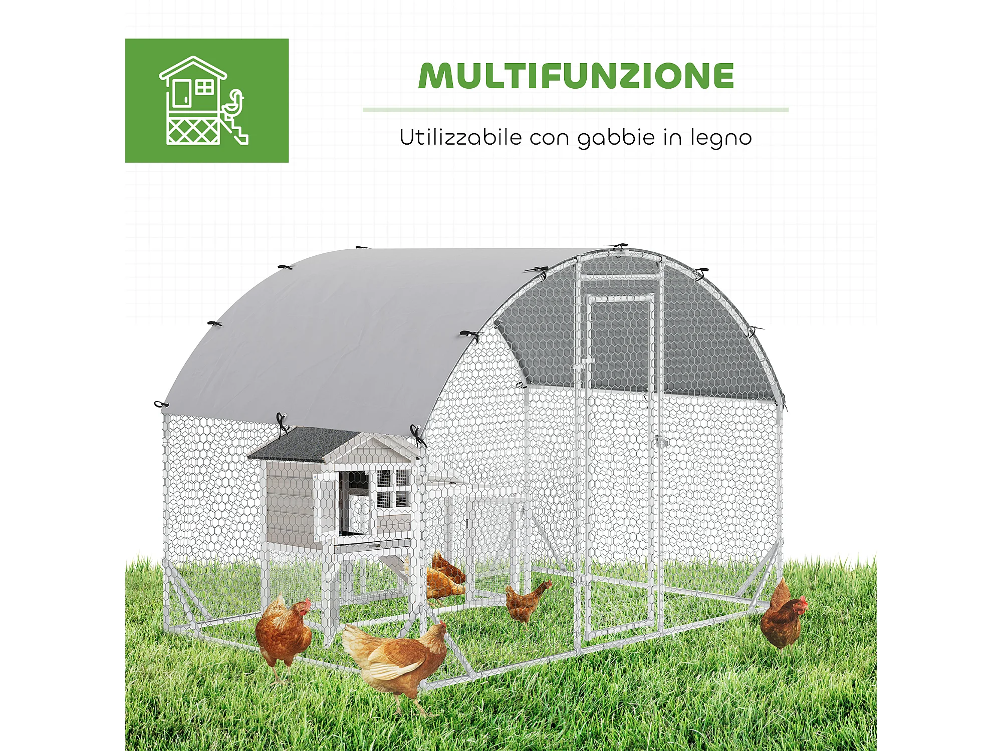 Recinto per galline con copertura anti uv 280x190x197 cm in metallo