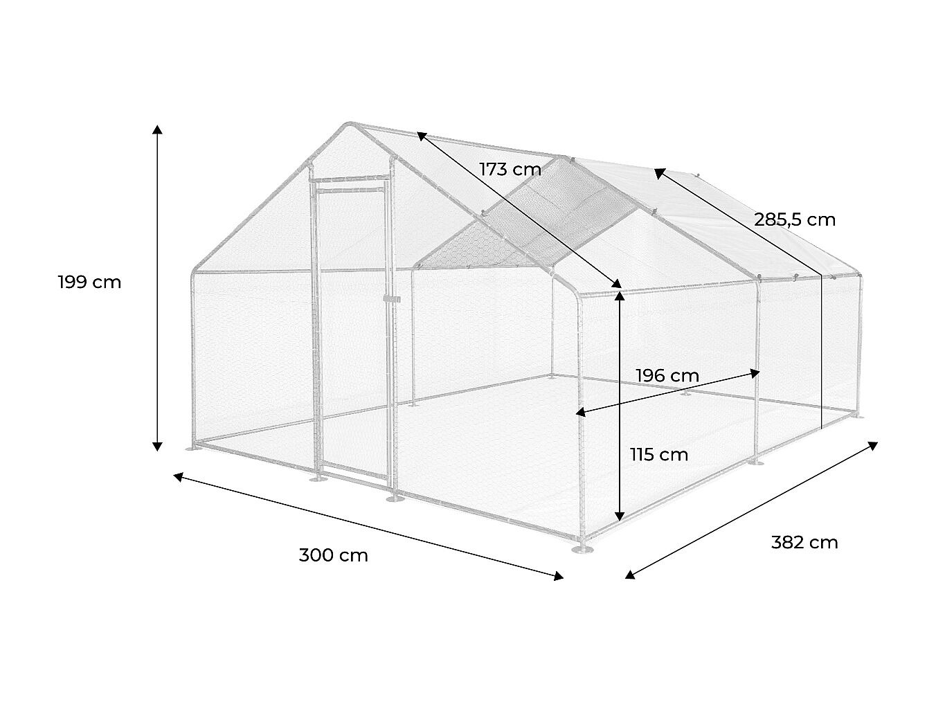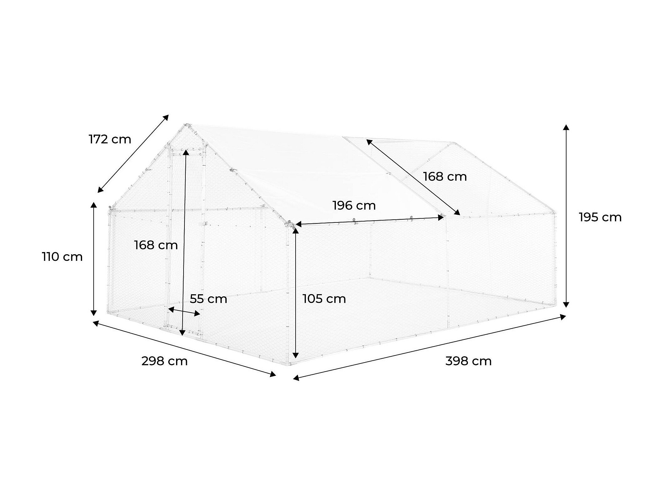 Gabbia per animali da esterno - Recinto per Polli 3 x 4m x 2m H - 12 mq