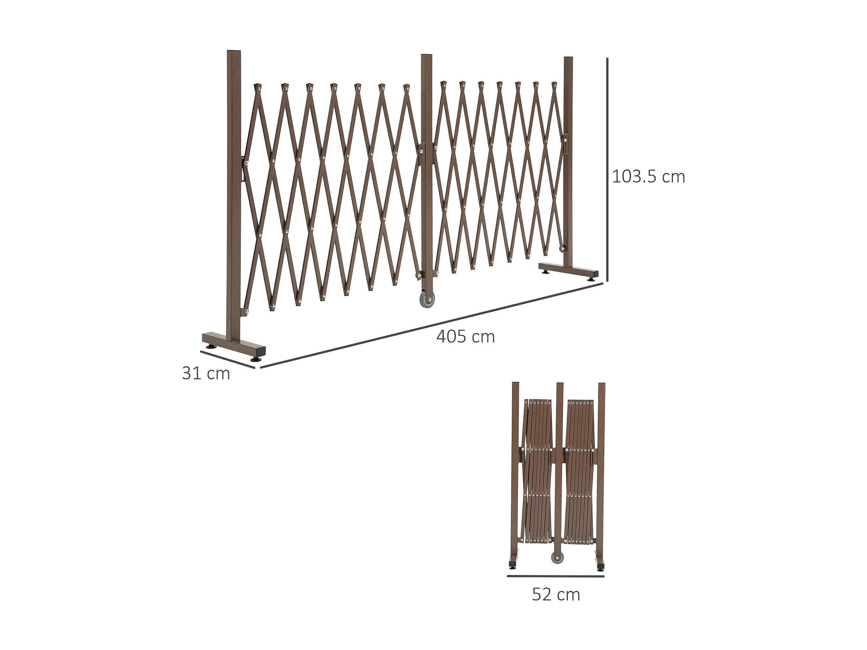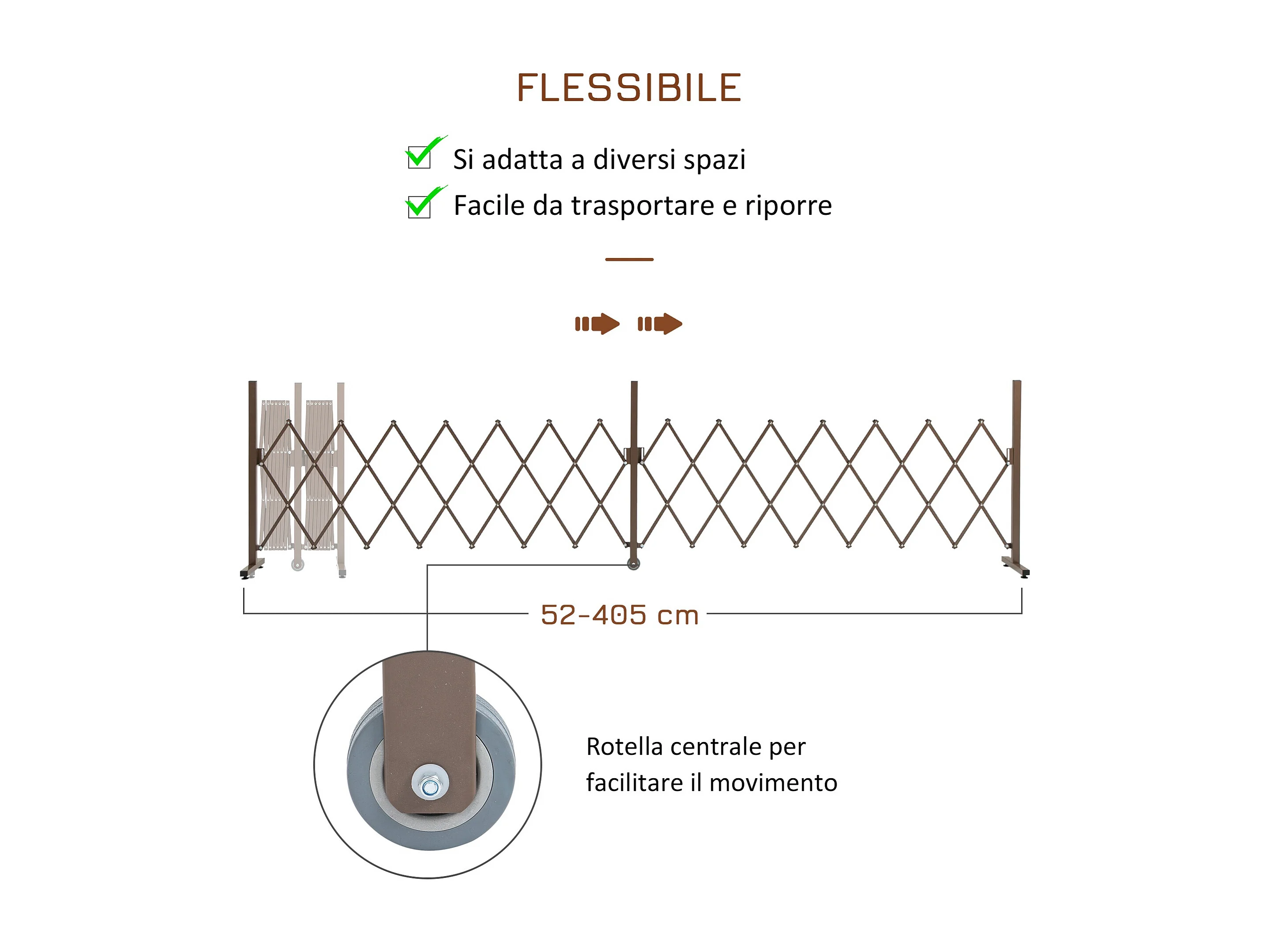 Recinzione estensibile da 52-405 cm in acciaio e alluminio marrone