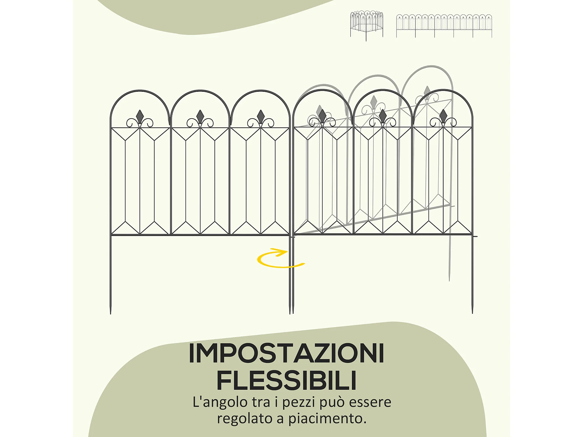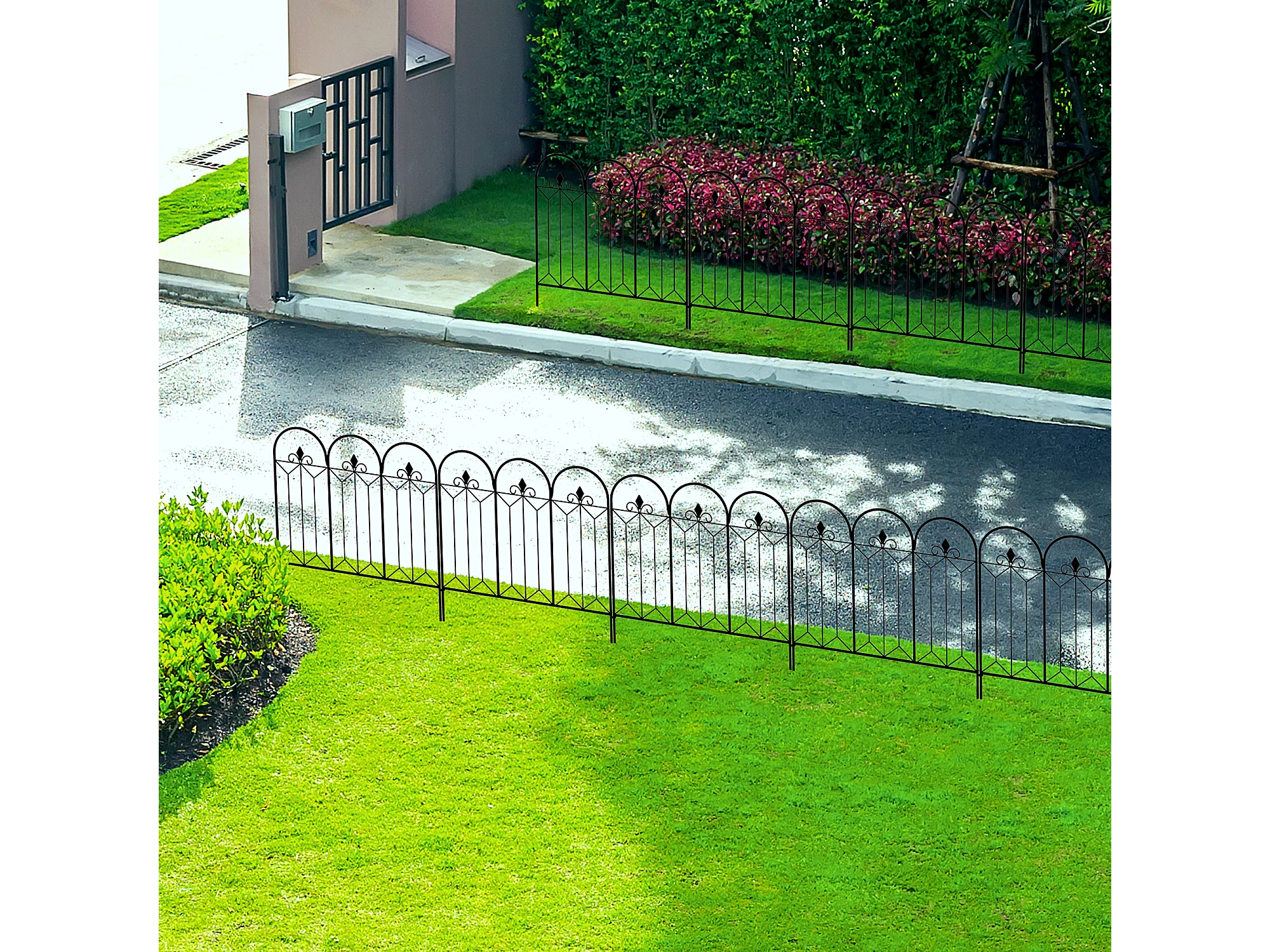 Recinzione esterna in metallo a 5 pannelli con paletti 305x79.5cm nera