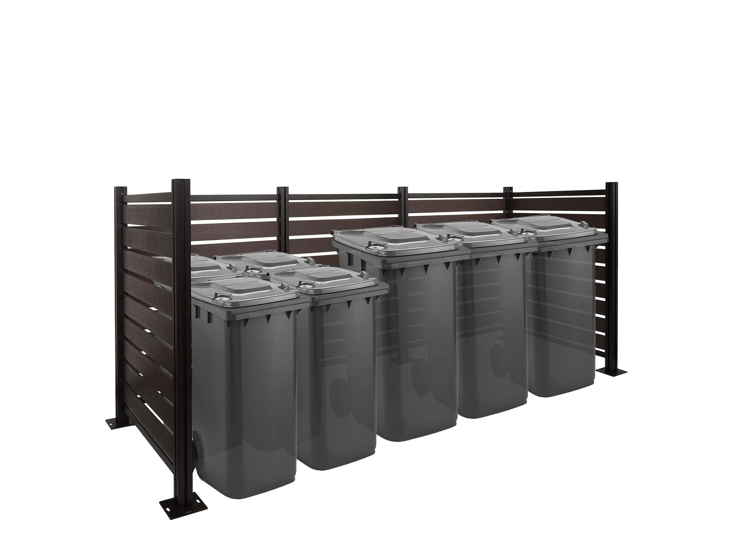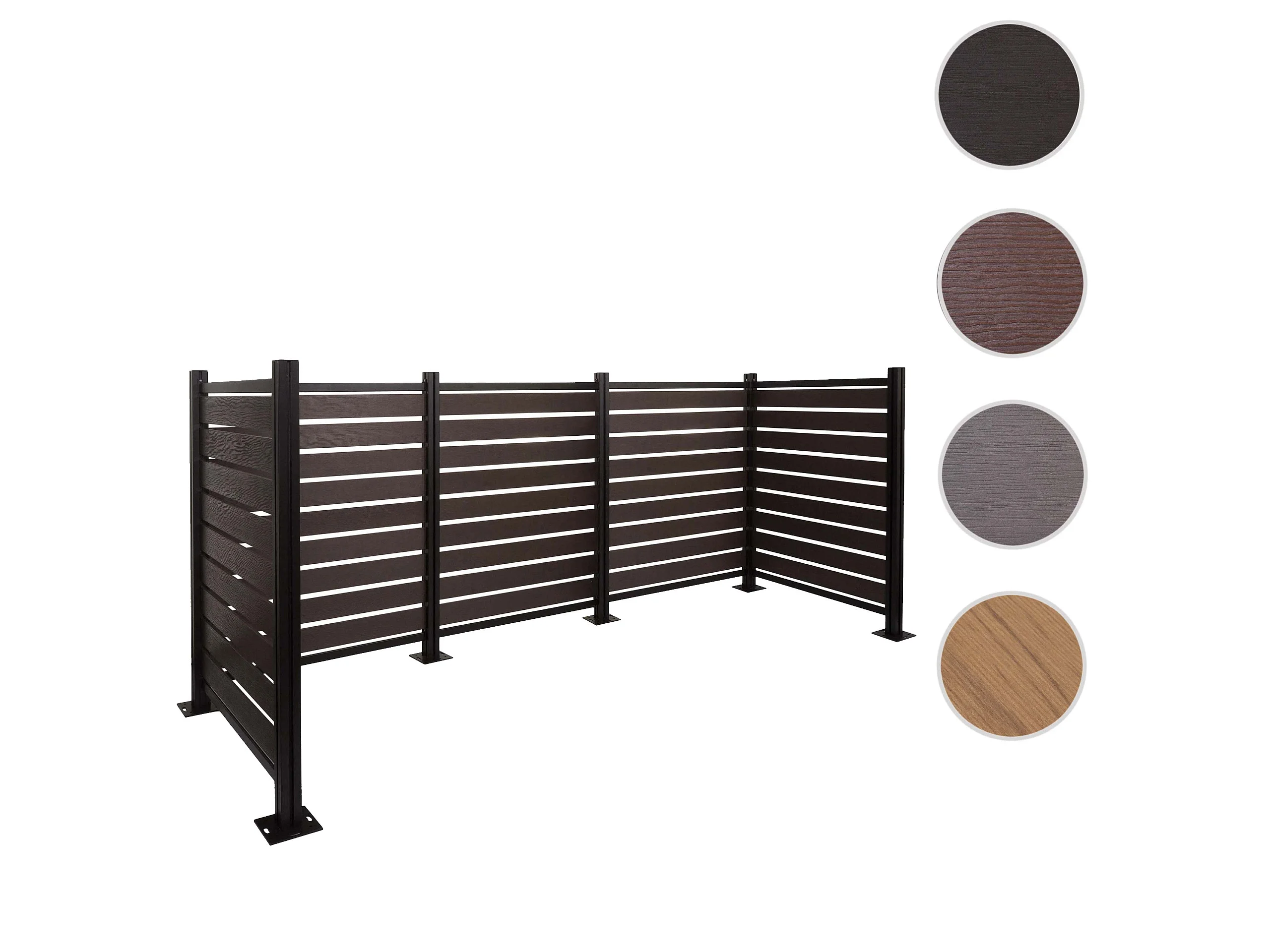 Recinzione fendivista bidoni box spazzatura rifiuti MCW-K57 alluminio aspetto legno 130x300x110cm ~ antracite
