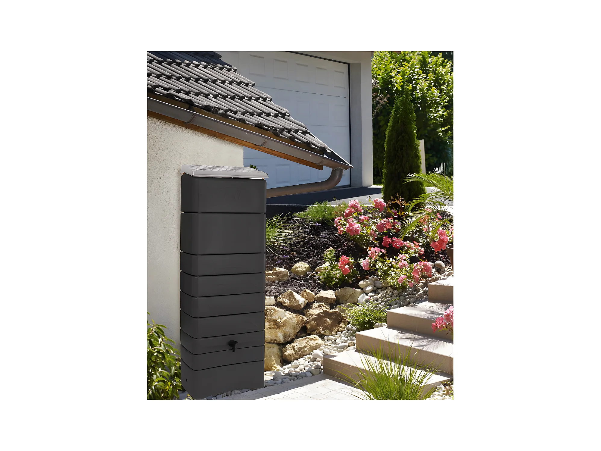Recuperatore d'acqua murale Bekasi 300 L antracite con kit di raccordo per grondaia e rubinetto