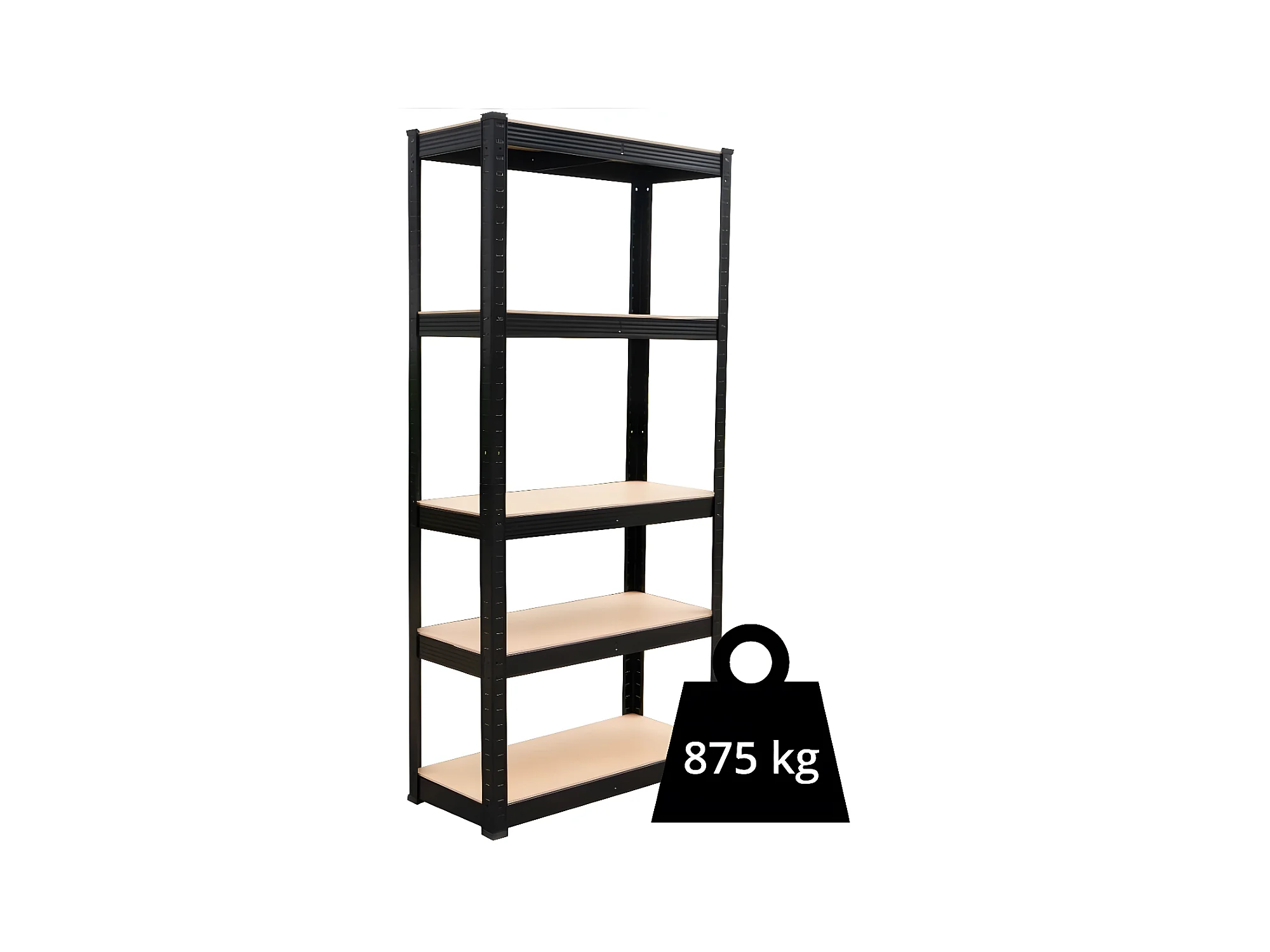 MORIE - Scaffalatura industriale - Portata massima 875 kg - 5 ripiani - Acciaio zincato + pannelli MDF