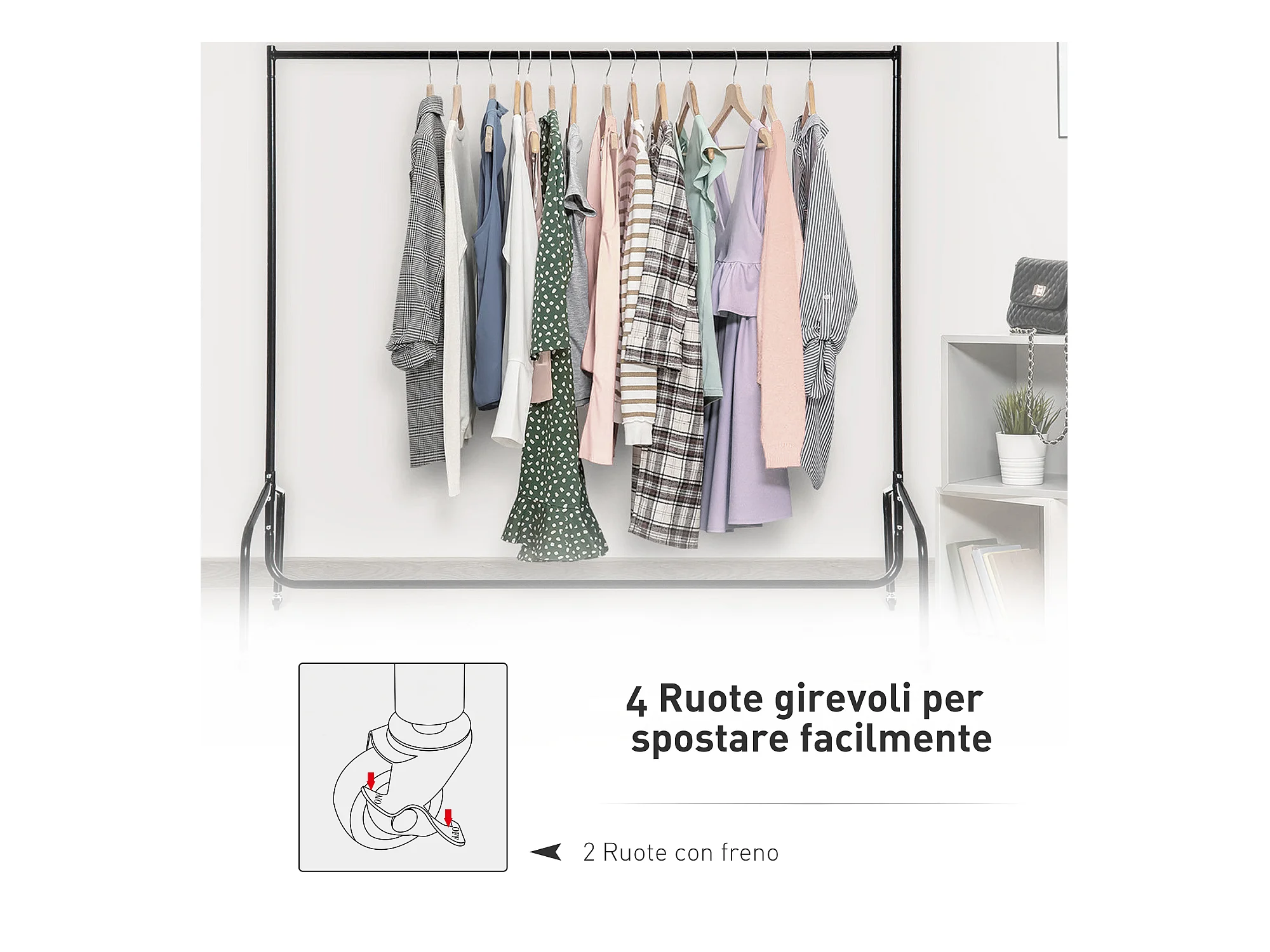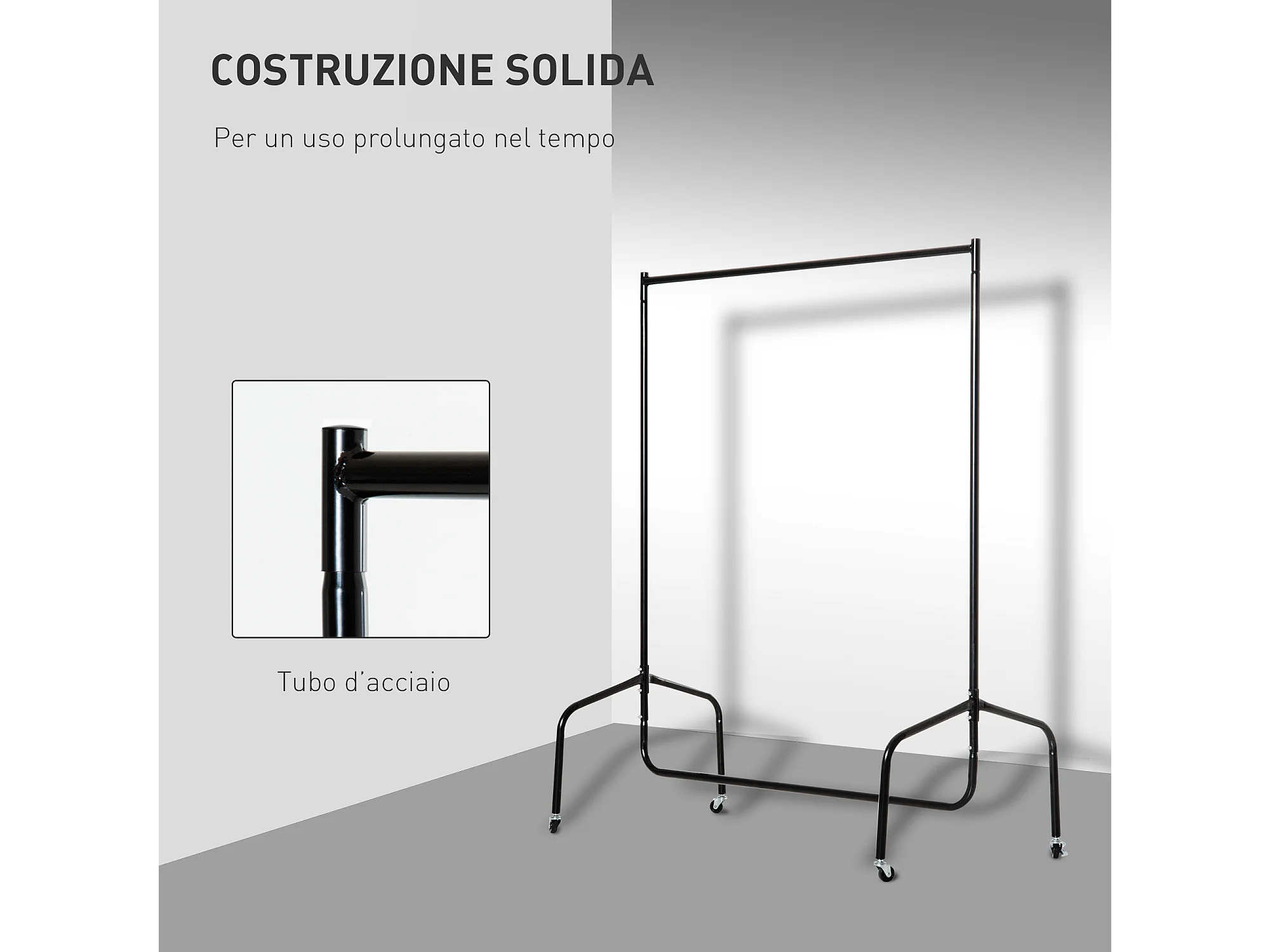 Rella appendiabiti attaccapanni in metallo nero con rotelle