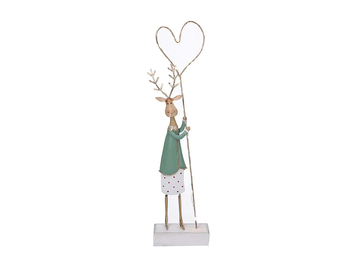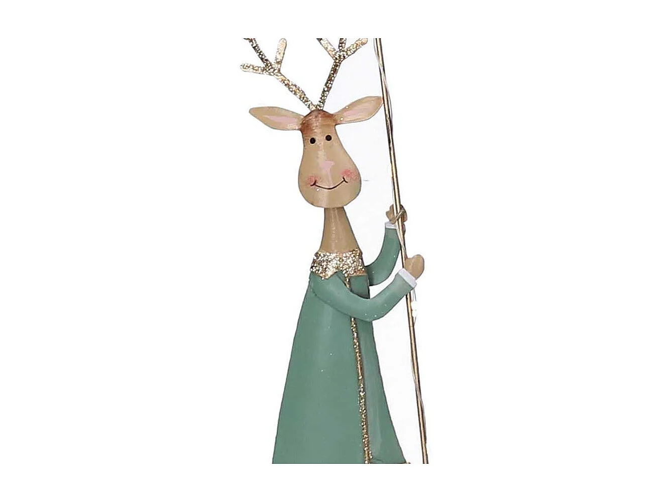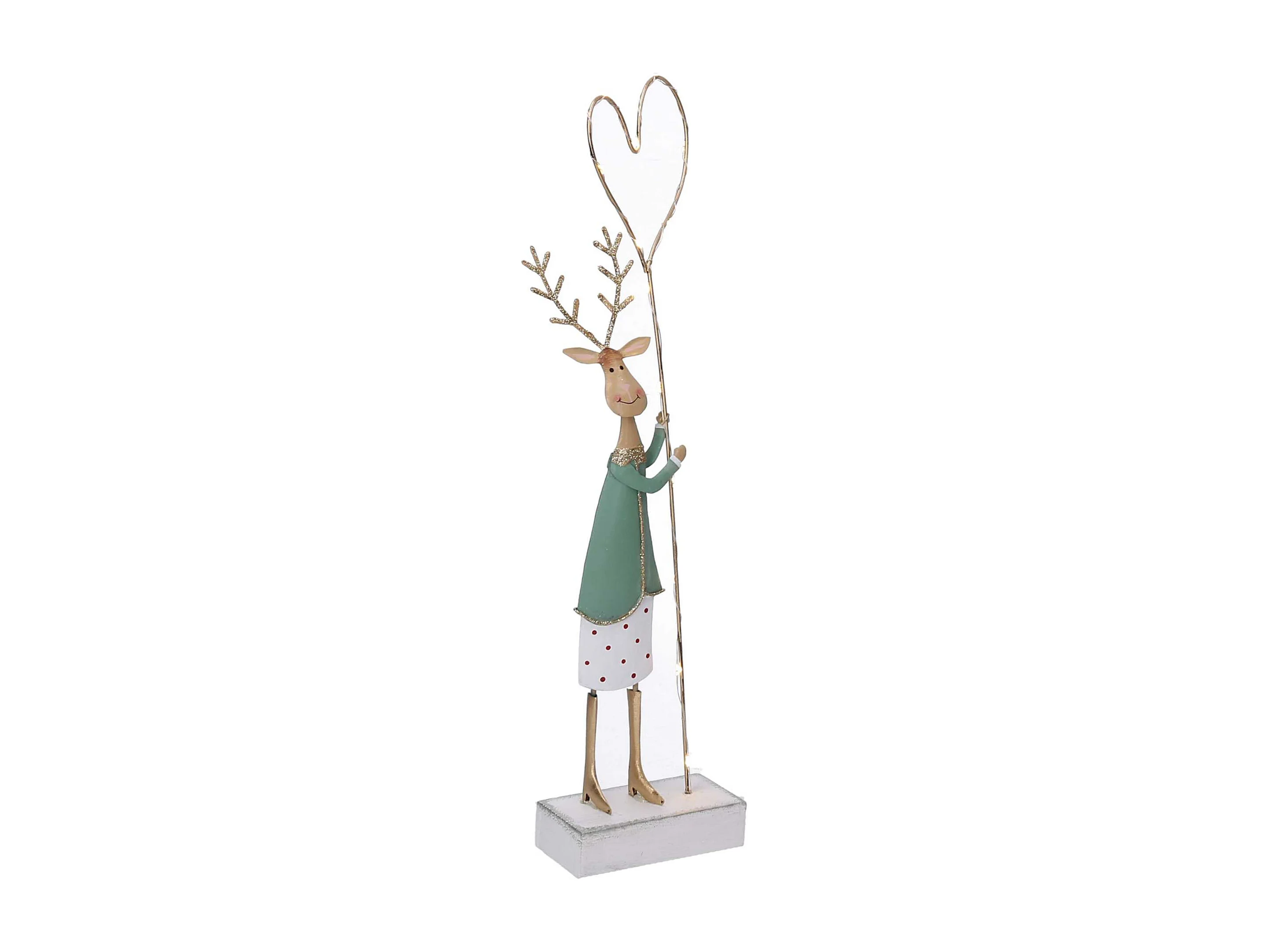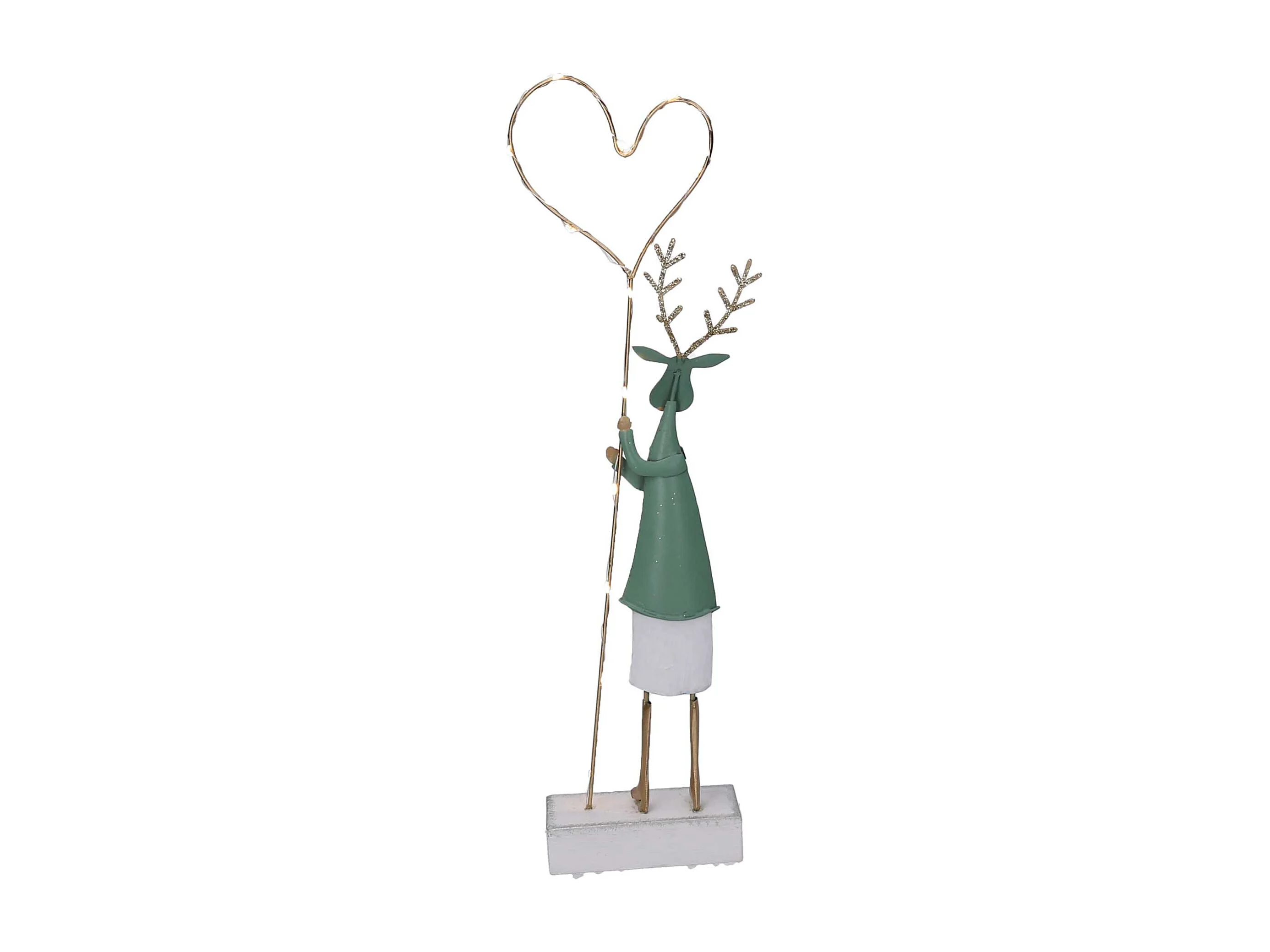Renna metallo oro e verde salvia con led cm 9,5x4,5h40