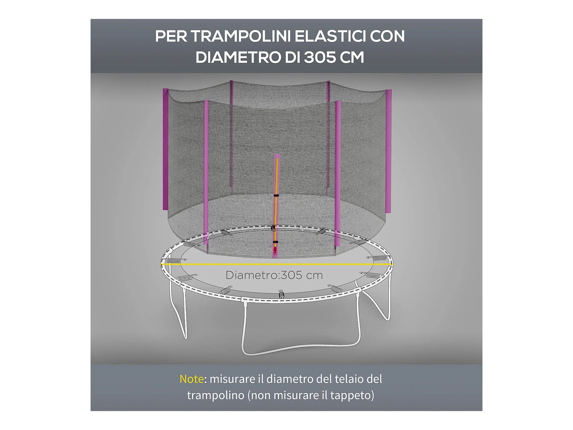 Rete di protezione trampolini a 6 pali in pe nero e rosa