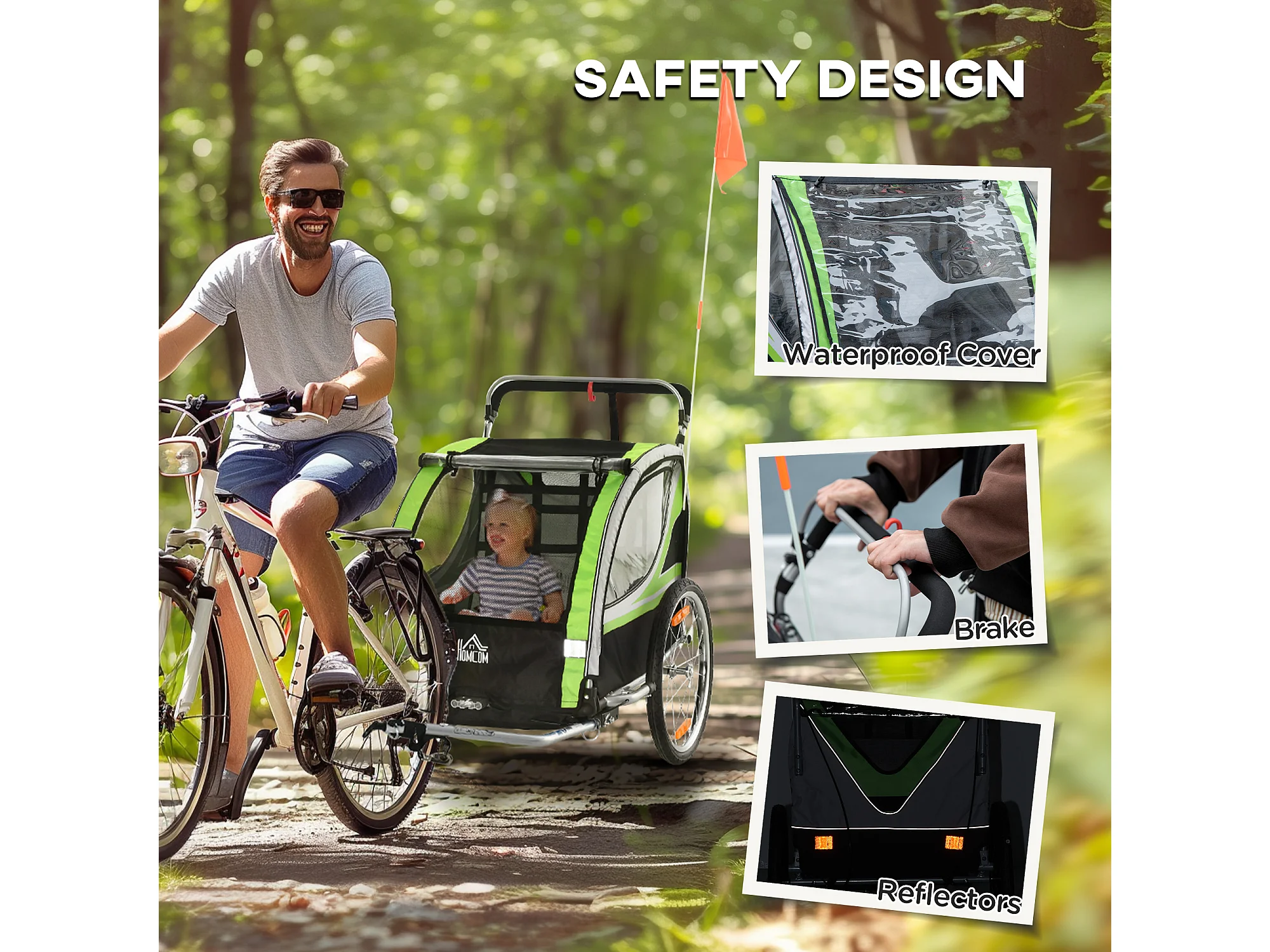 Rimorchio bici e passeggino per bambini 2 in 1 verde