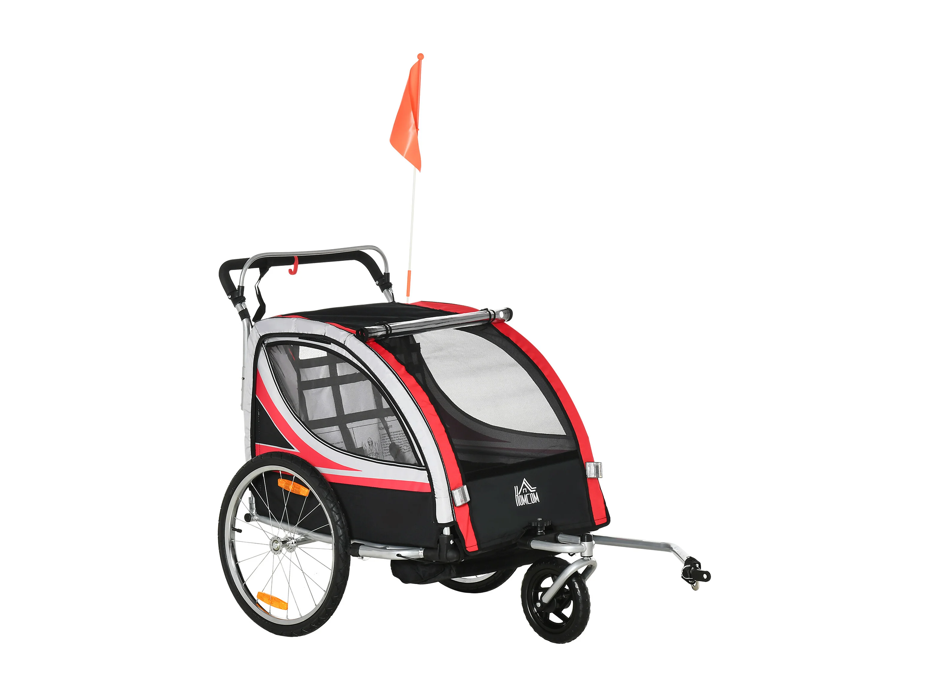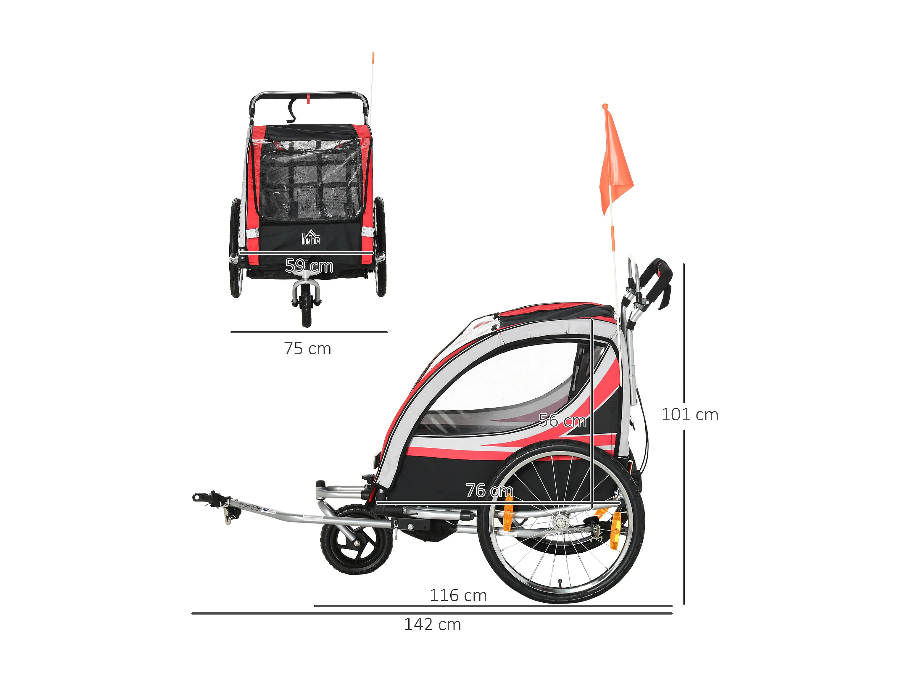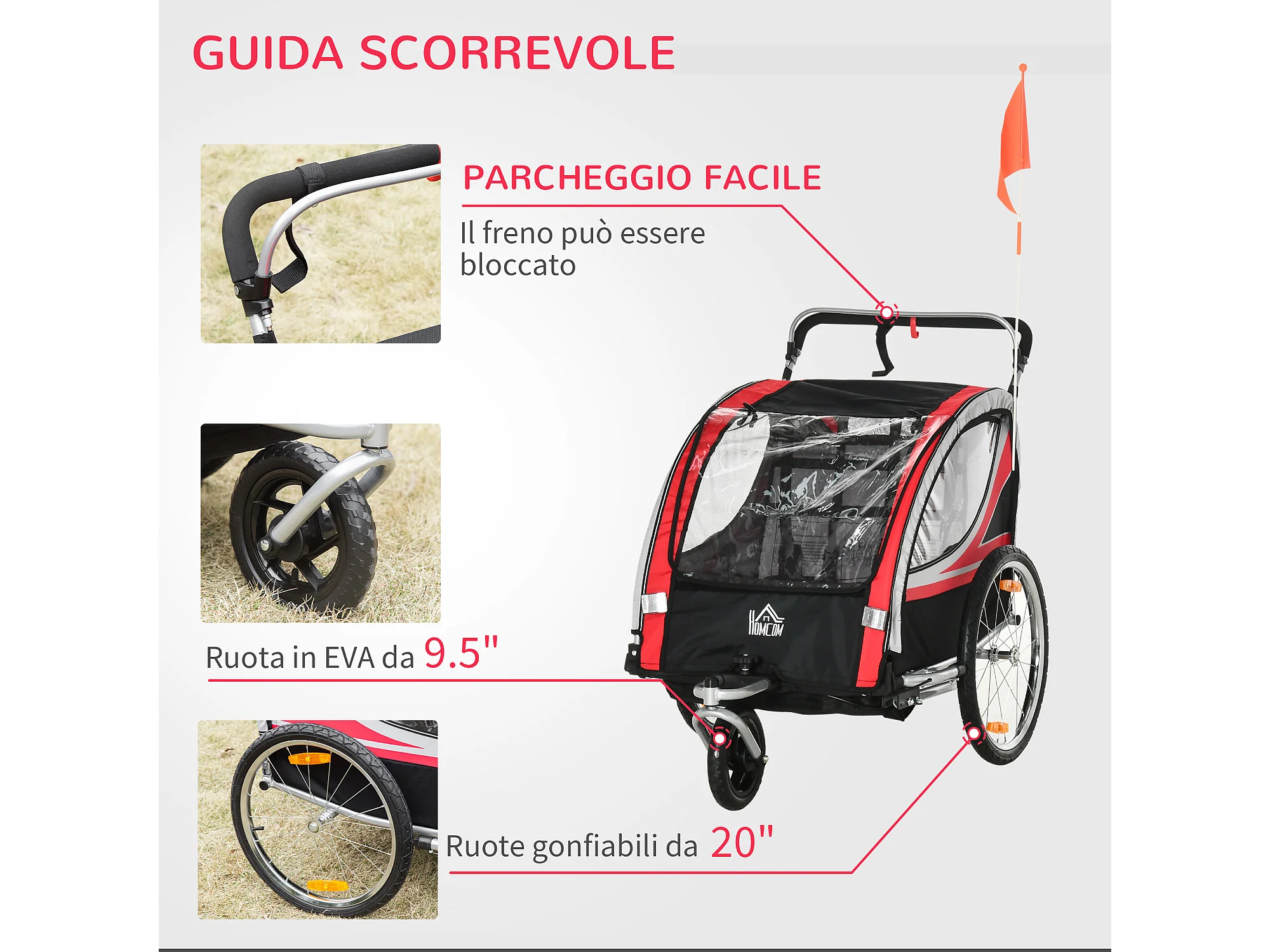 Rimorchio bici per bambini passeggino 2 posti cintura e tasche