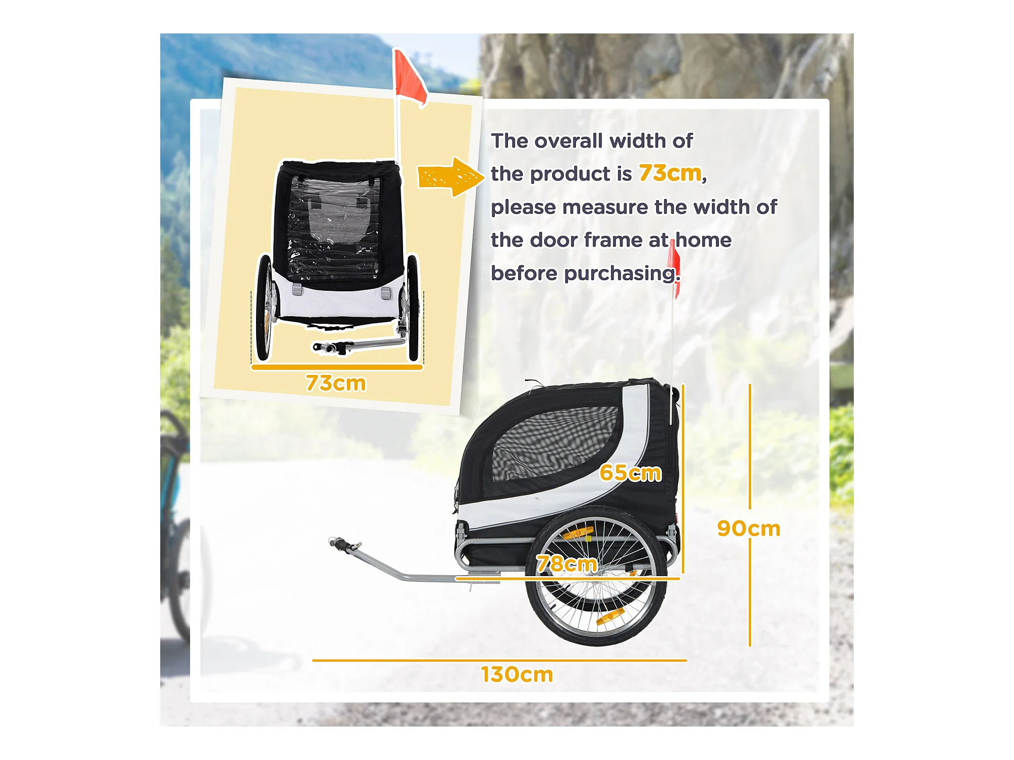 Rimorchio bici per cani taglia media con finestre laterali e bandierina