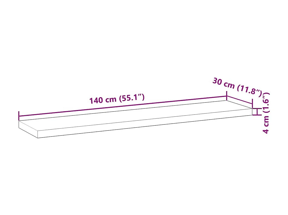 Ripiano a Parete 140x30x4 cm Legno Massello Acacia Non Trattato