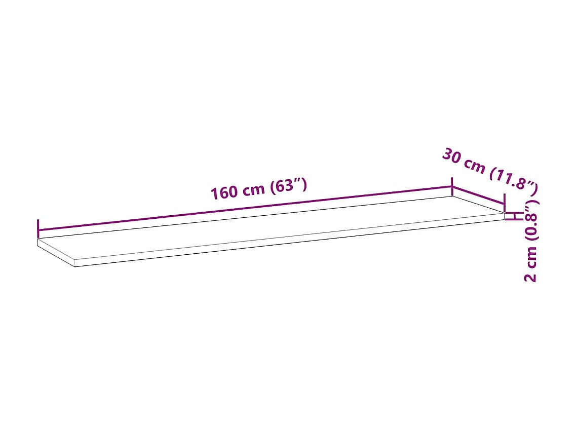 Ripiano a Parete 160x20x2 cm Legno Massello Acacia Non Trattato