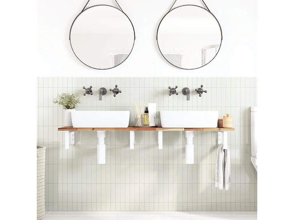 Ripiano a Parete per Lavabo in Acciaio e Massello di Acacia