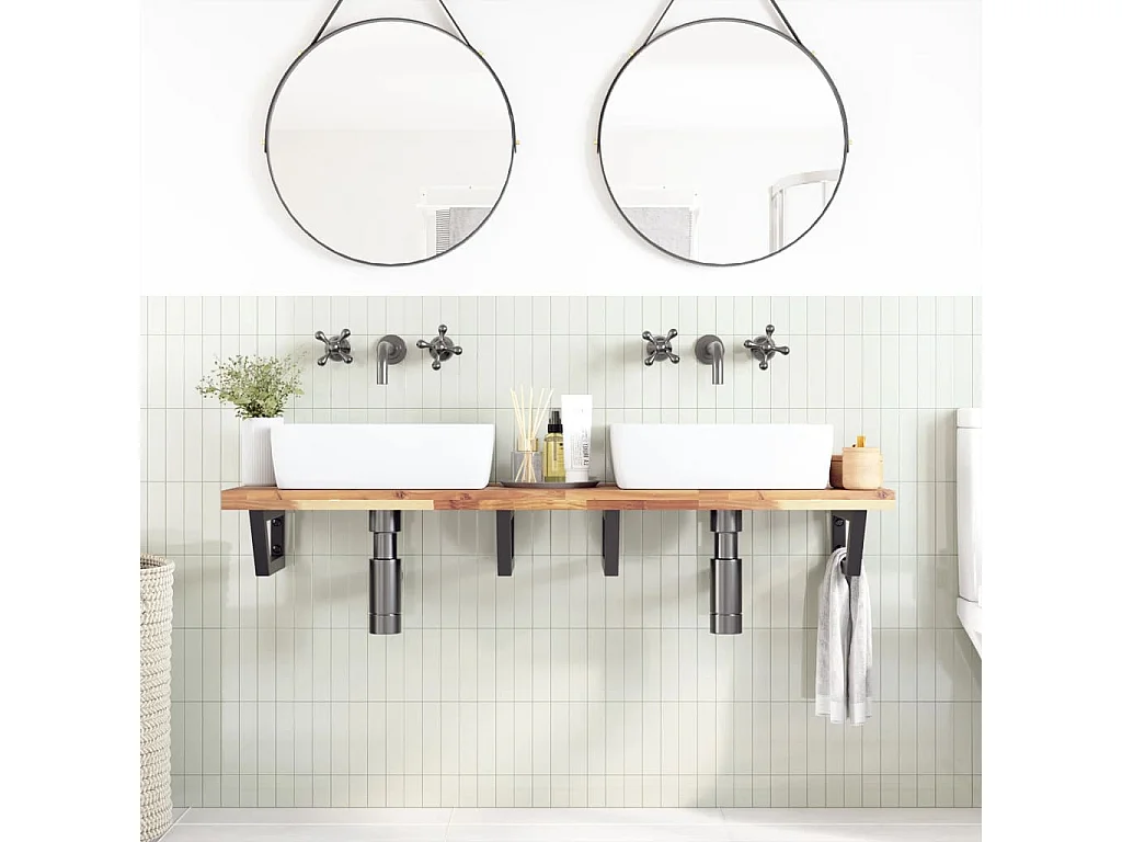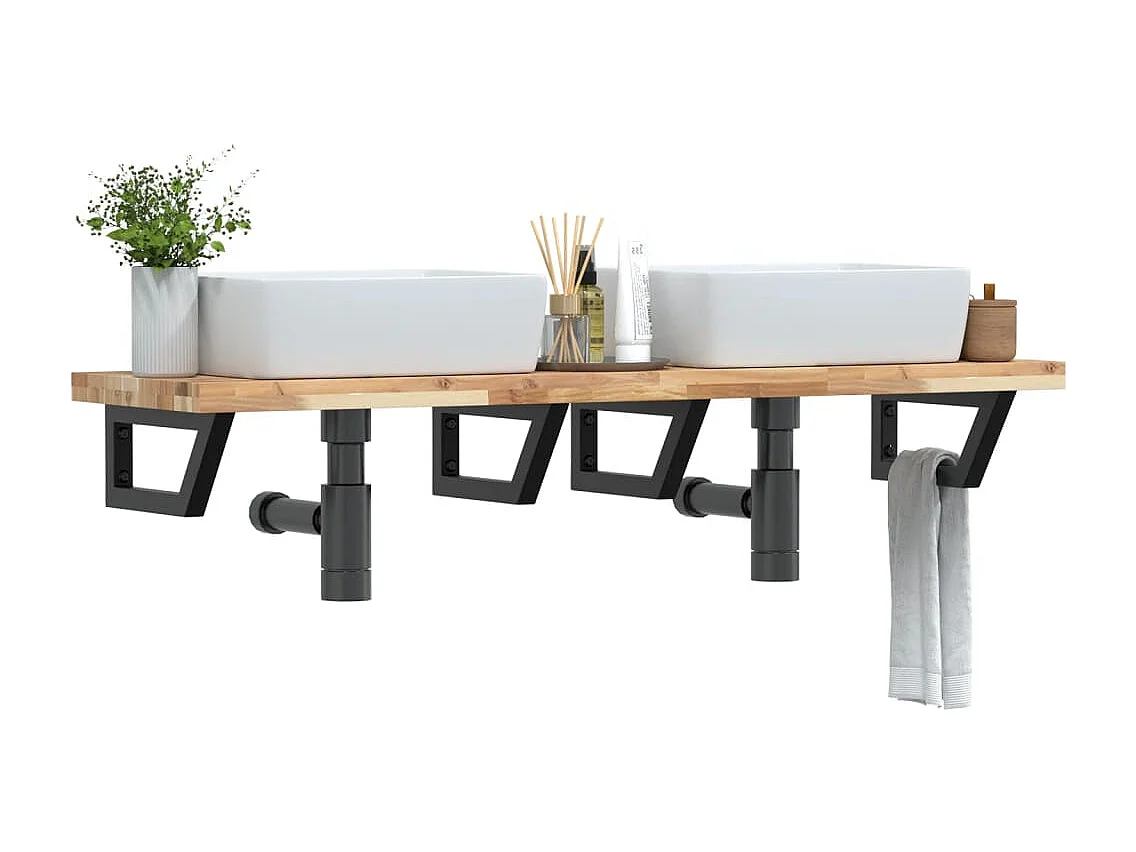 Ripiano a Parete per Lavabo in Acciaio e Massello di Acacia