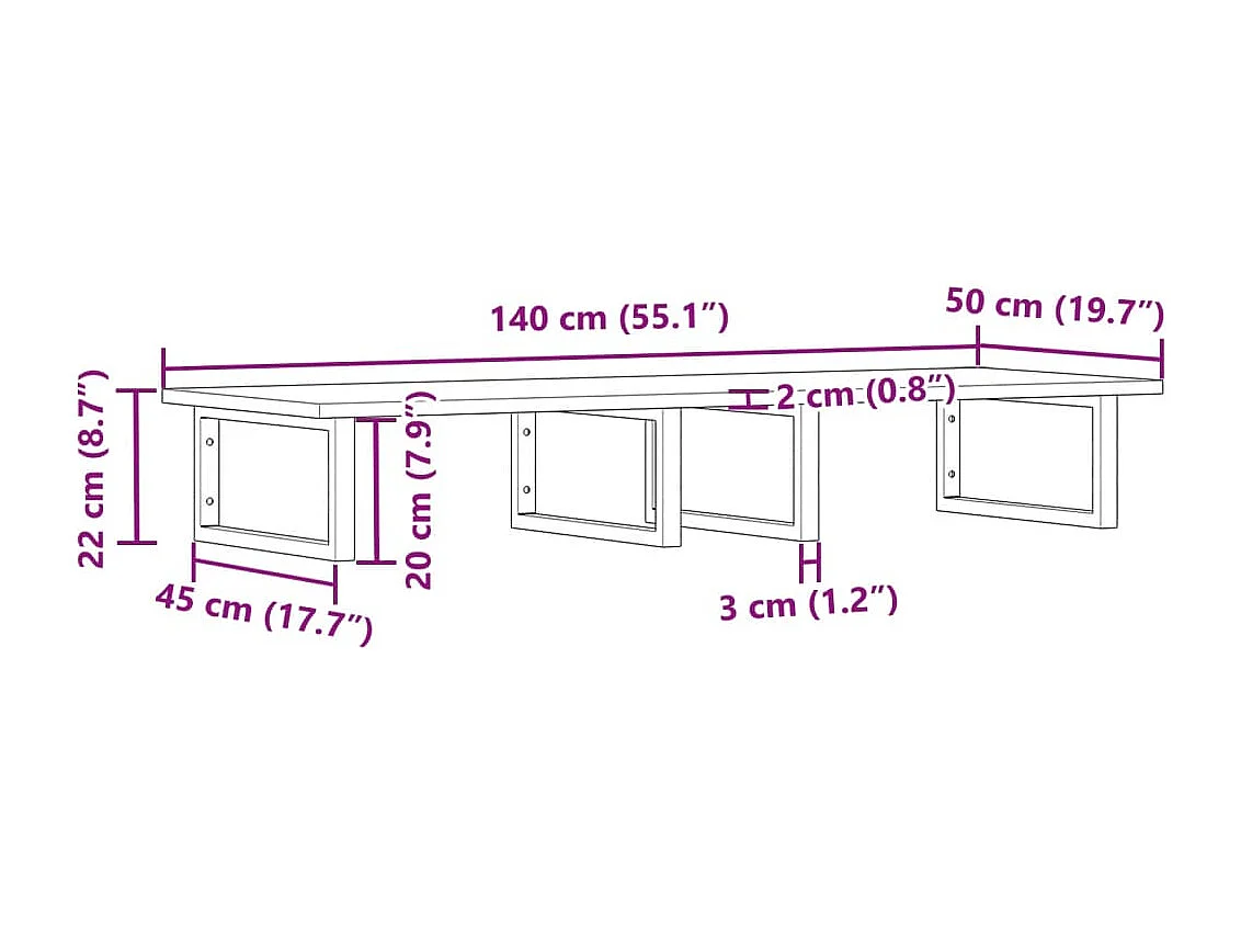 Ripiano a Parete per Lavabo in Acciaio e Massello di Acacia